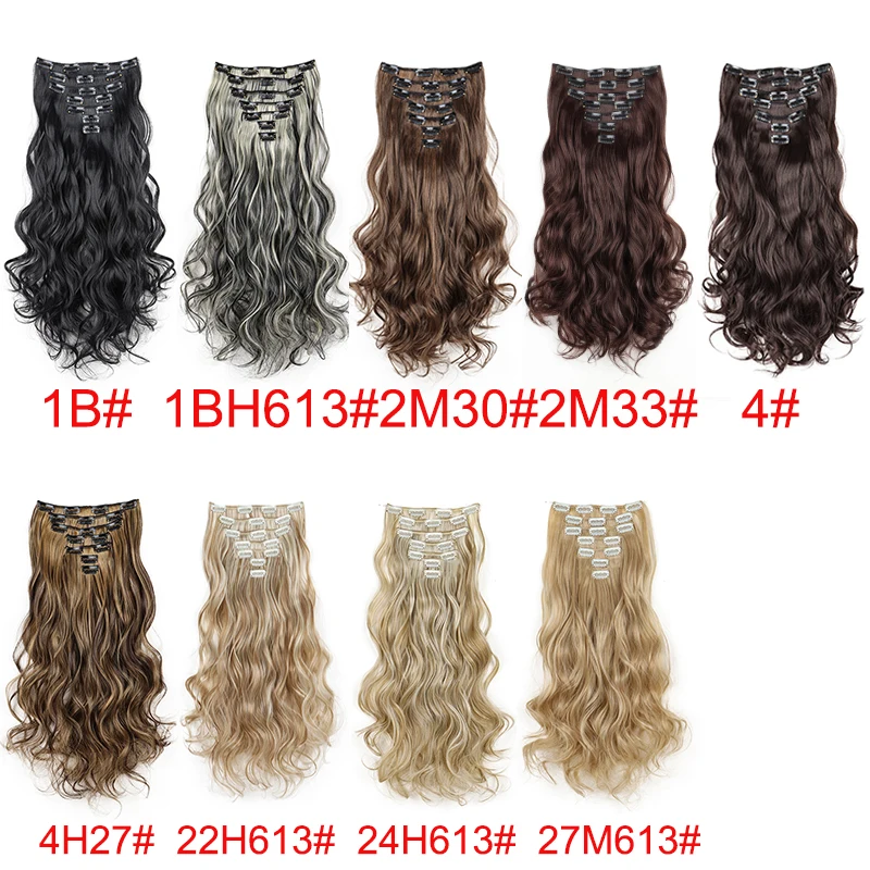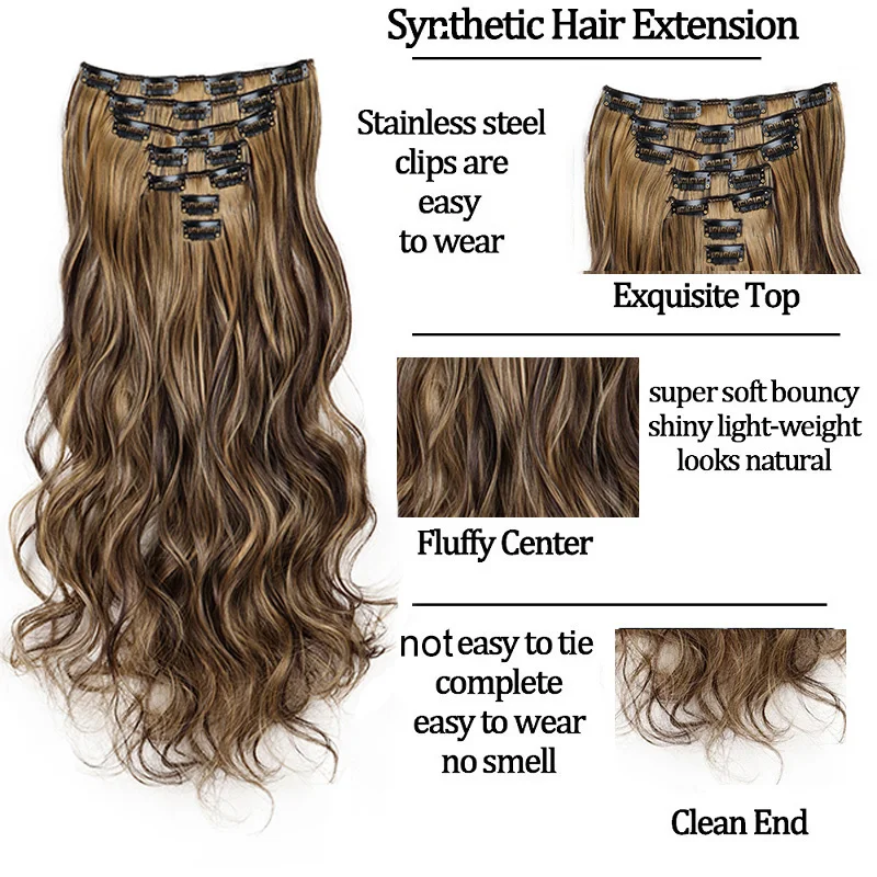 Clip In Hair Extensions 7pcs/Set Curly Long Synthetic Clip On Hairpiece Black Brown Wavy Curly Style For Women Girls