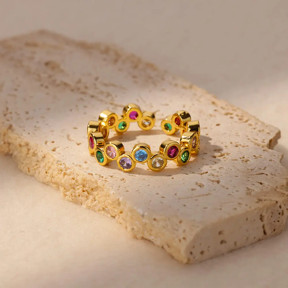 Colorful Tiny Round Rings For Women Stainless Steel Gold Color Adjustable Wedding Ring Luxury Aesthetic Jewlery Couple Gift