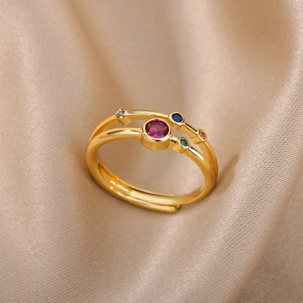 Colorful Zircon Round Stone Rings For Women Stainless Steel Gold Color Finger Ring Wedding Aesthetic Jewelry Gift bijoux femme