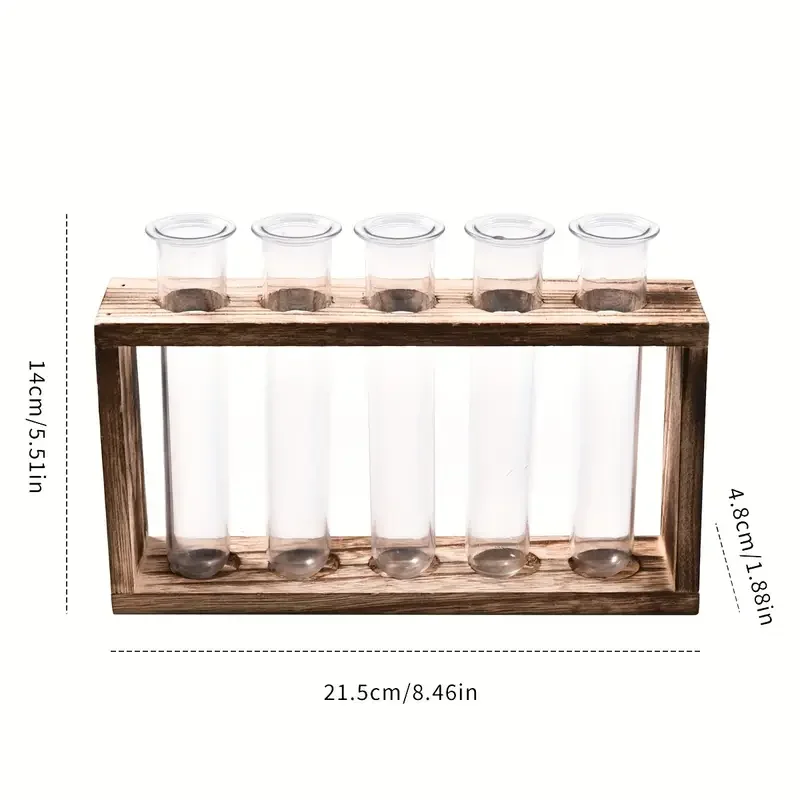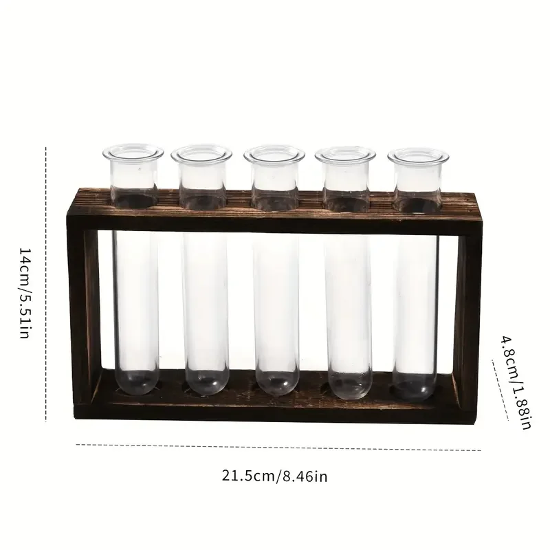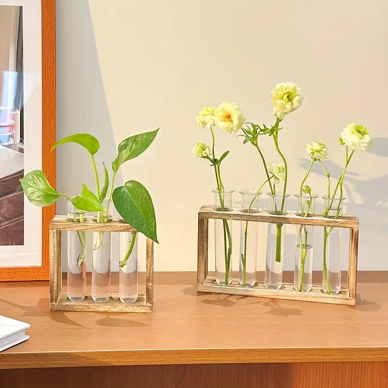 Creative Retro Hydroponic Green Plant Test Tube Vase Series Wooden Frame Vase Office Desktop Decoration Home Decoration