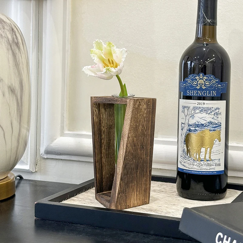 Creative Wooden Hydroponic Vase Plant Vase Retro Vase Transparent Vase Desktop Plant Home Decoration