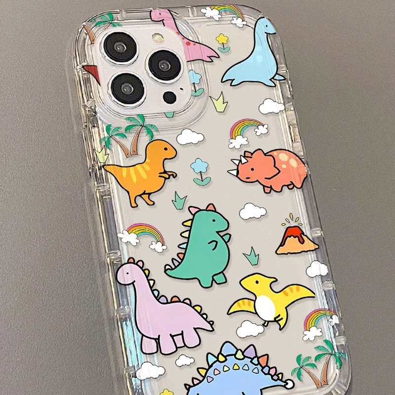 Cute Dinosaur Phone Case For iPhone 16 Pro Case iPhone 14 13 15 11 12 17 Pro Max XR XS 7 8 Plus SE Airbag Cartoon Animals Cover