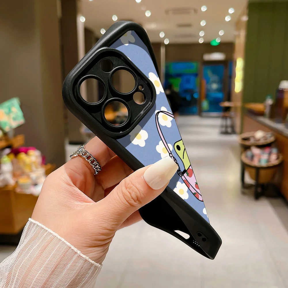 Cute Flower Phone Case For iPhone 16 Pro Case iPhone 13 11 14 15 12 17 Pro Max 16E XR 7 8 Plus SE Cartoon Frog Strawberry Cover