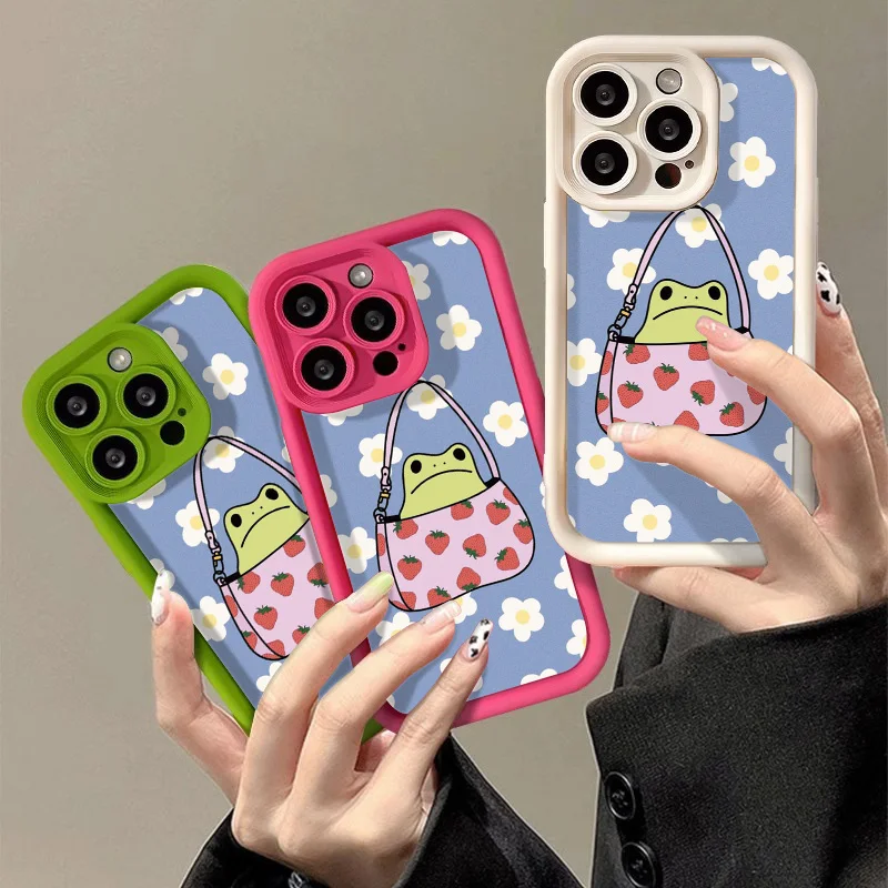 Cute Flower Phone Case For iPhone 13 Case for iPhone 11 12 14 15 Pro Max XR XS X 7 8 Plus SE 2020 Cartoon Frog Strawberry Cover