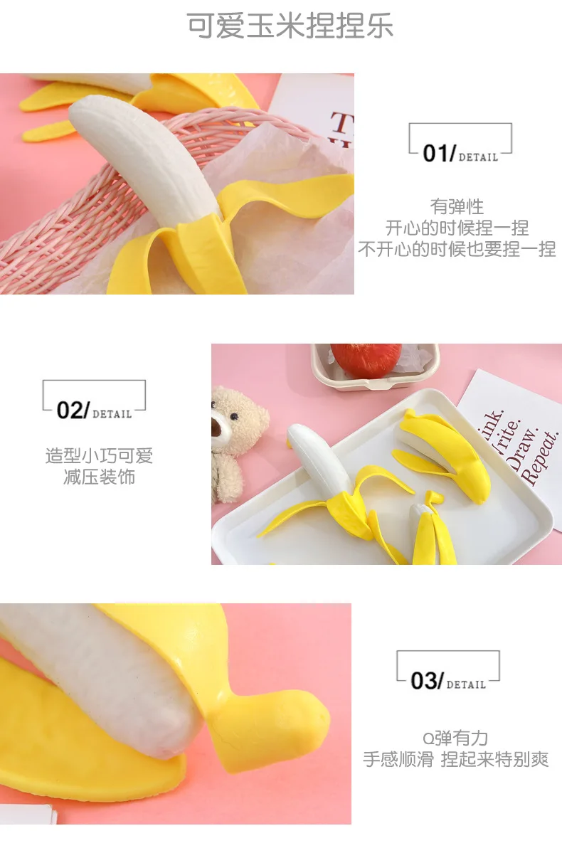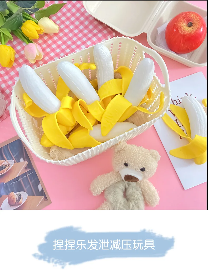 Cute Fruit Squishy Stress Balls Fidget Sensory Toy Squeeze Stress Relief Hand Toy Anti-Anxiety Banana Stretchy Slow Rising Toy