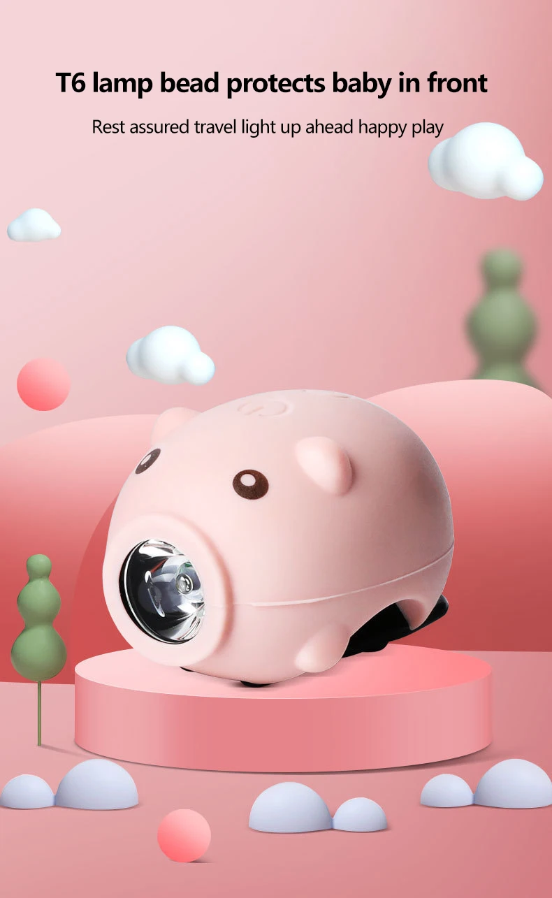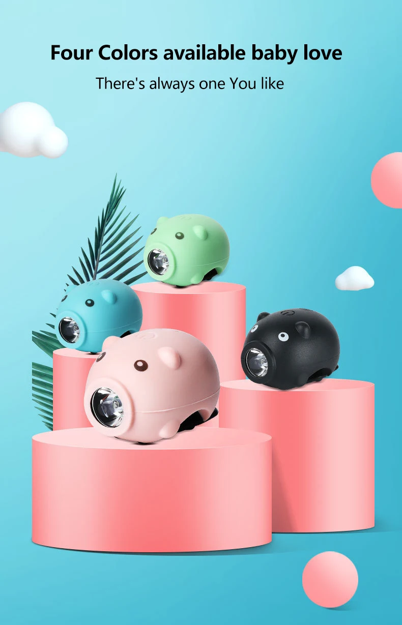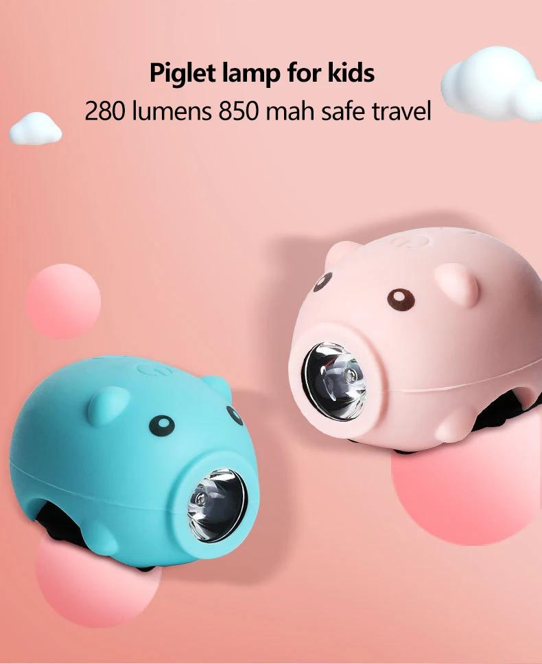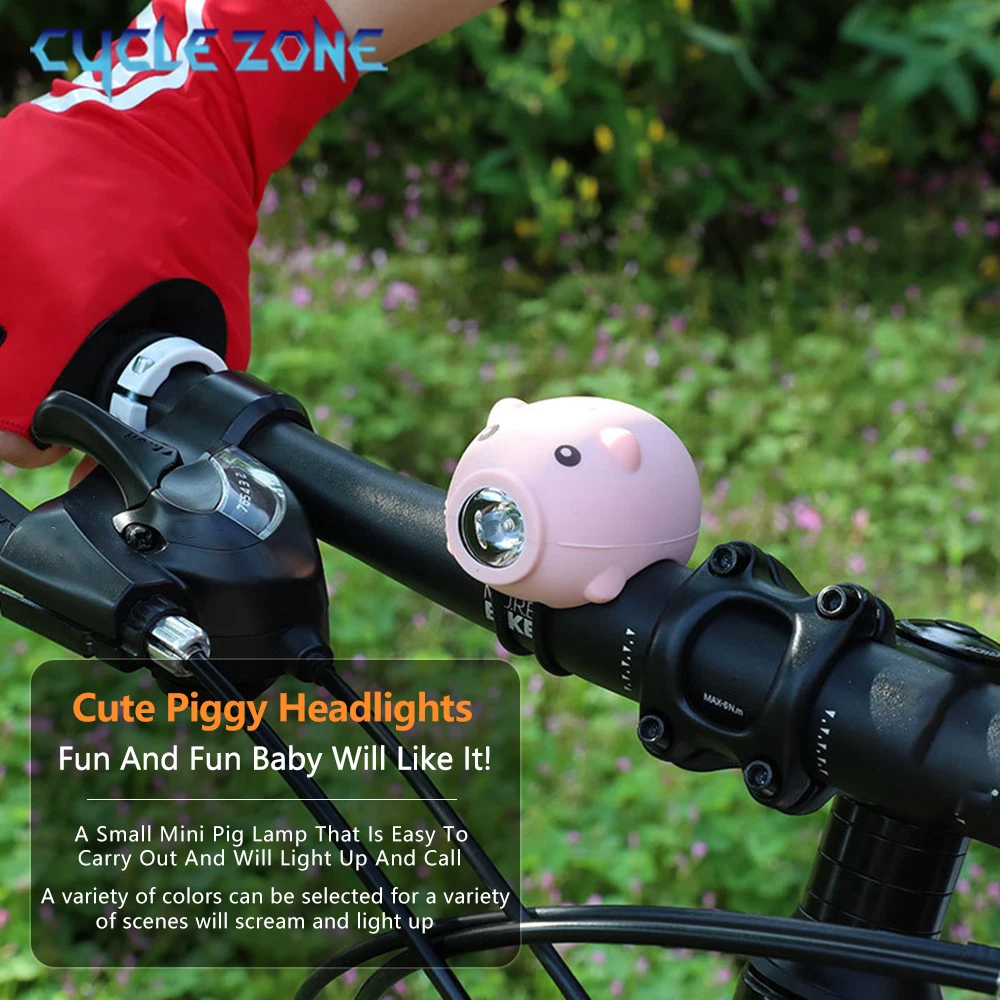 Cute Pig Bicycle Lights Rechargeable Bike Front Light Headlight Night Riding Children Cartoon Pig Lights for Electric Scooter