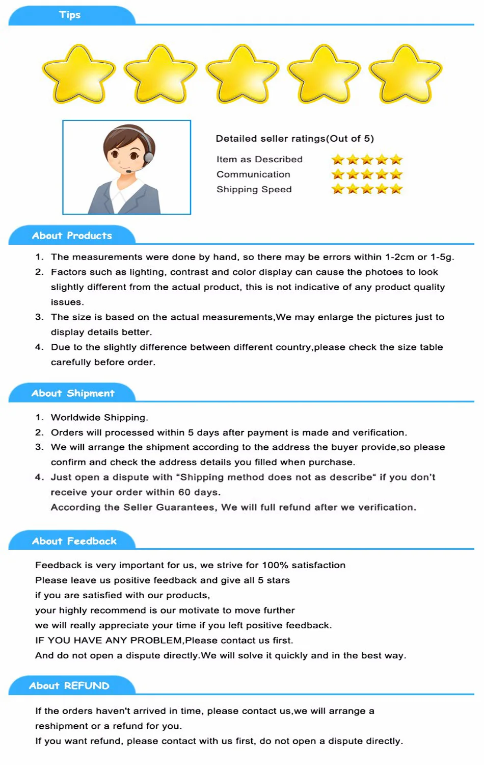 4.We will bear all the shipping cost if the item is not a advertised.