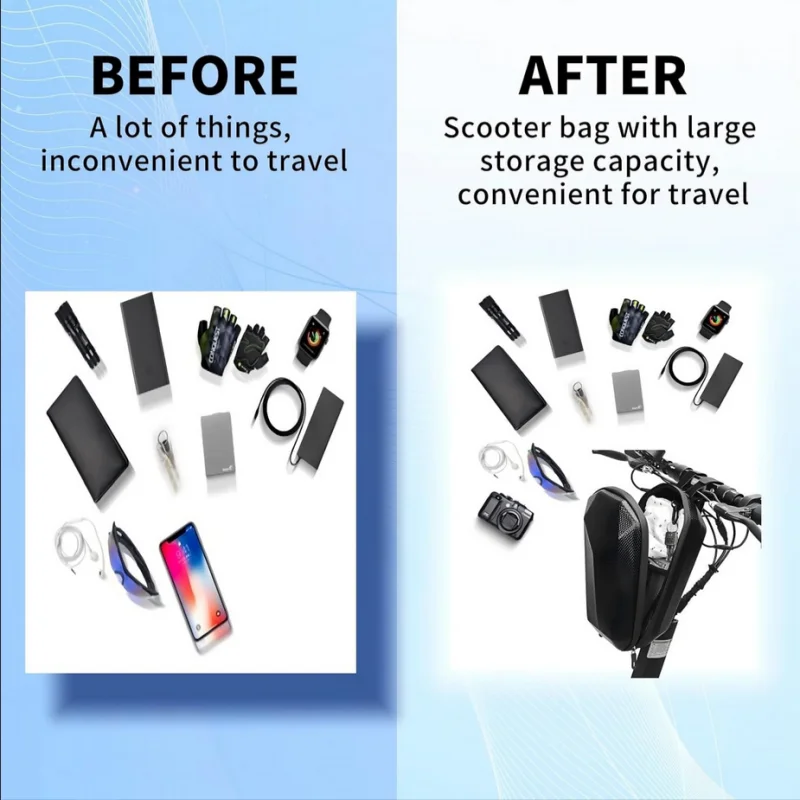 EVA Hard Shell: The scooter bag is made of high-end EVA hard shell, which is lightweight and resistant, which can ensure that your items are protected during travel.