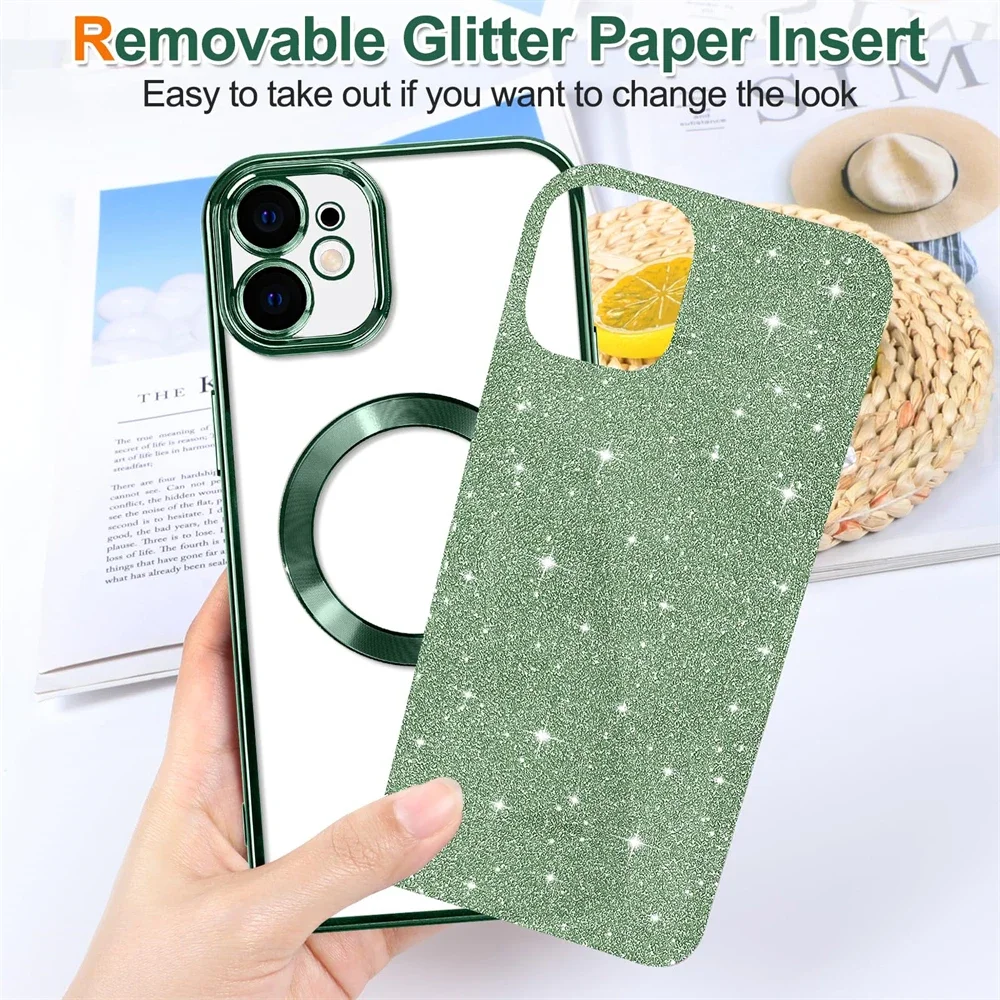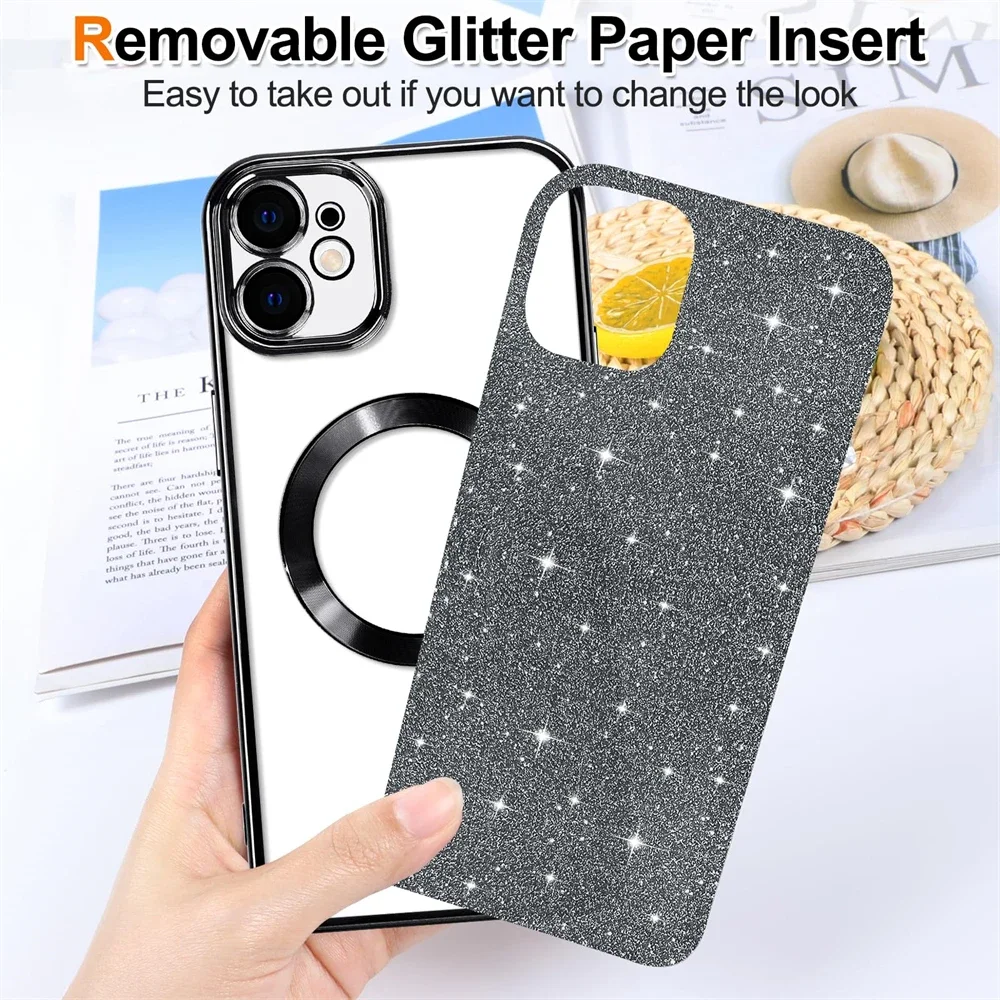 Bling Glitter Magnetic Case For iPhone 14 13 12 11 Pro Max 14 Plus Magsafe Plating Clear Soft Bling Colorfull Wireless Charging Cover Shining for Women Girls
