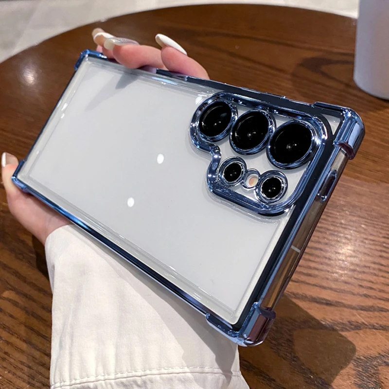 Electroplated Four Corners Anti Drop Clear Protective Phone Case For Samsung Galaxy S24 S23 S22 Ultra Plus Note 20 Ultra Cover