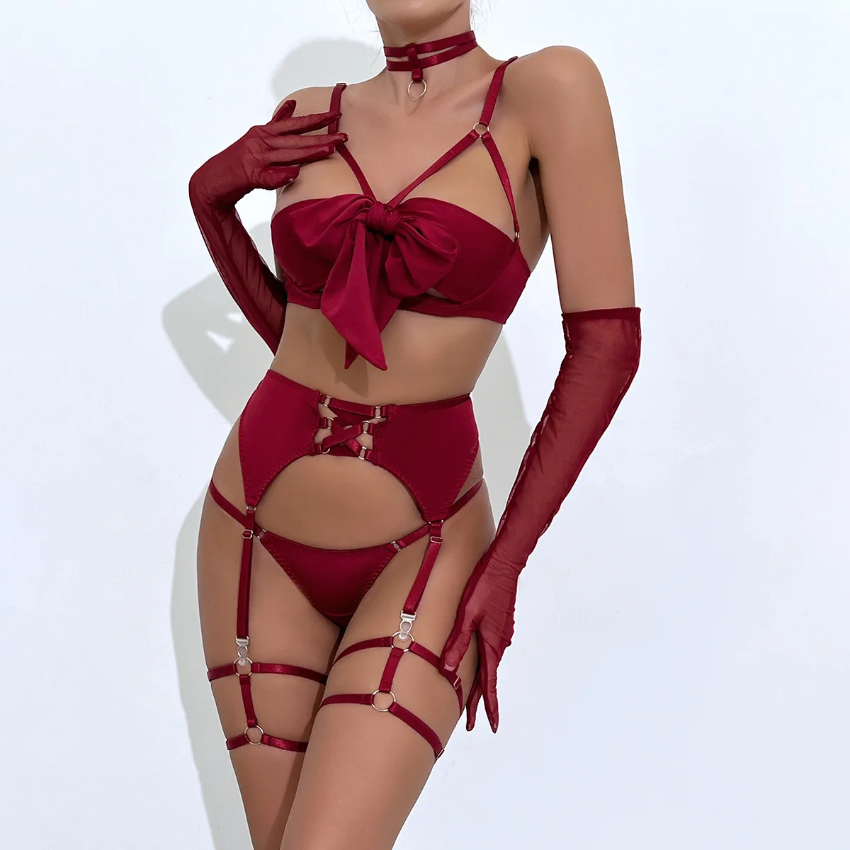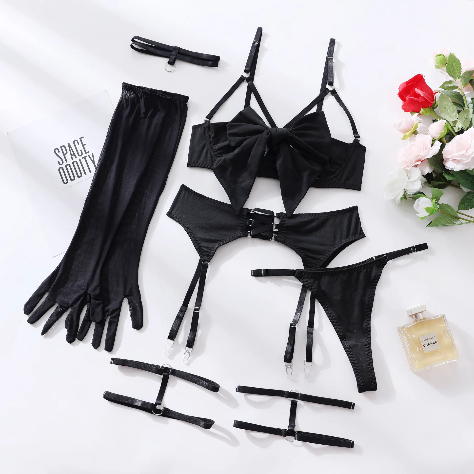 Ellolace Bowknot Lingerie Open Bra Silk Underwear Sissy Bilizna Set Uncensored Porn Sensual Intimate Garter Thongs Sexy Outfits
