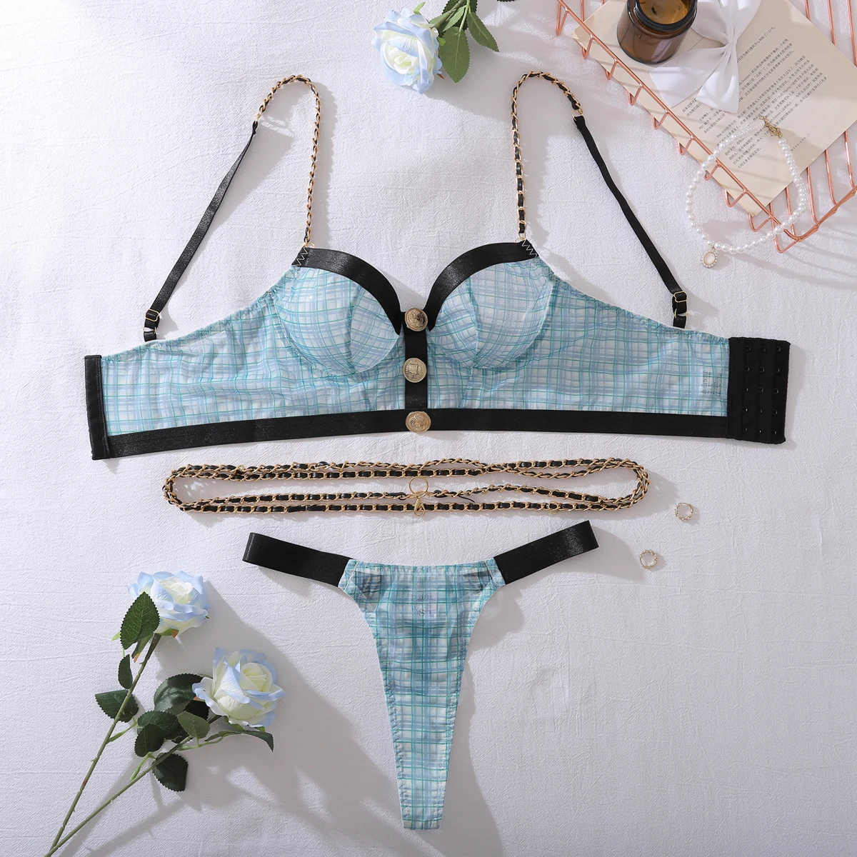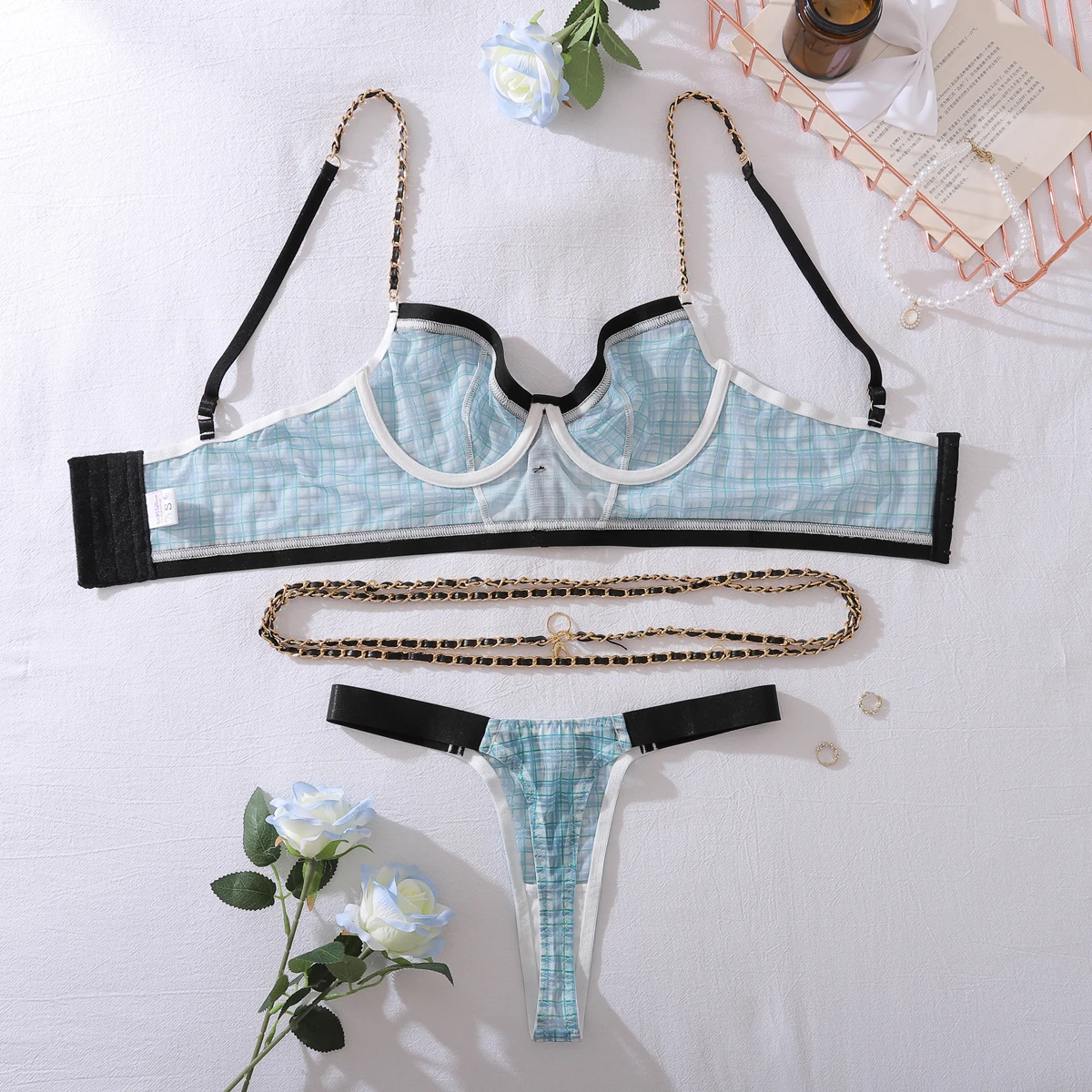Be the first to review “Ellolace Elegant Sexy Female Lingerie Retro Contrast Color 2PC Bustier Panty Set with Chain Hot Plaid Women’s Ethical Underwear” Cancel reply