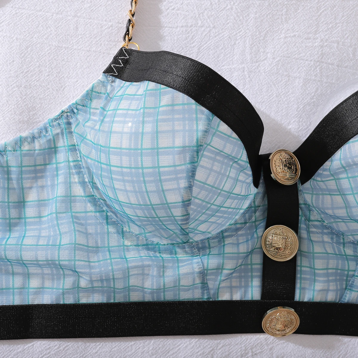 Ellolace Elegant Sexy Female Lingerie Retro Contrast Color 2PC Bustier Panty Set with Chain Hot Plaid Women’s Ethical Underwear