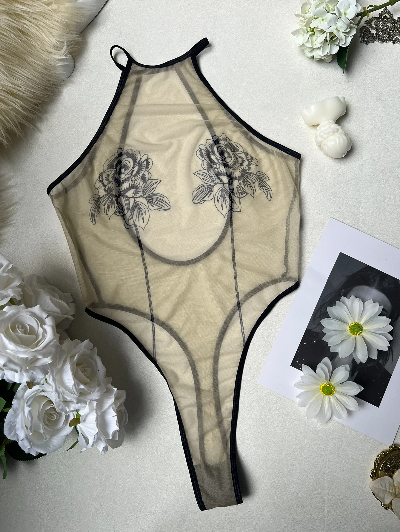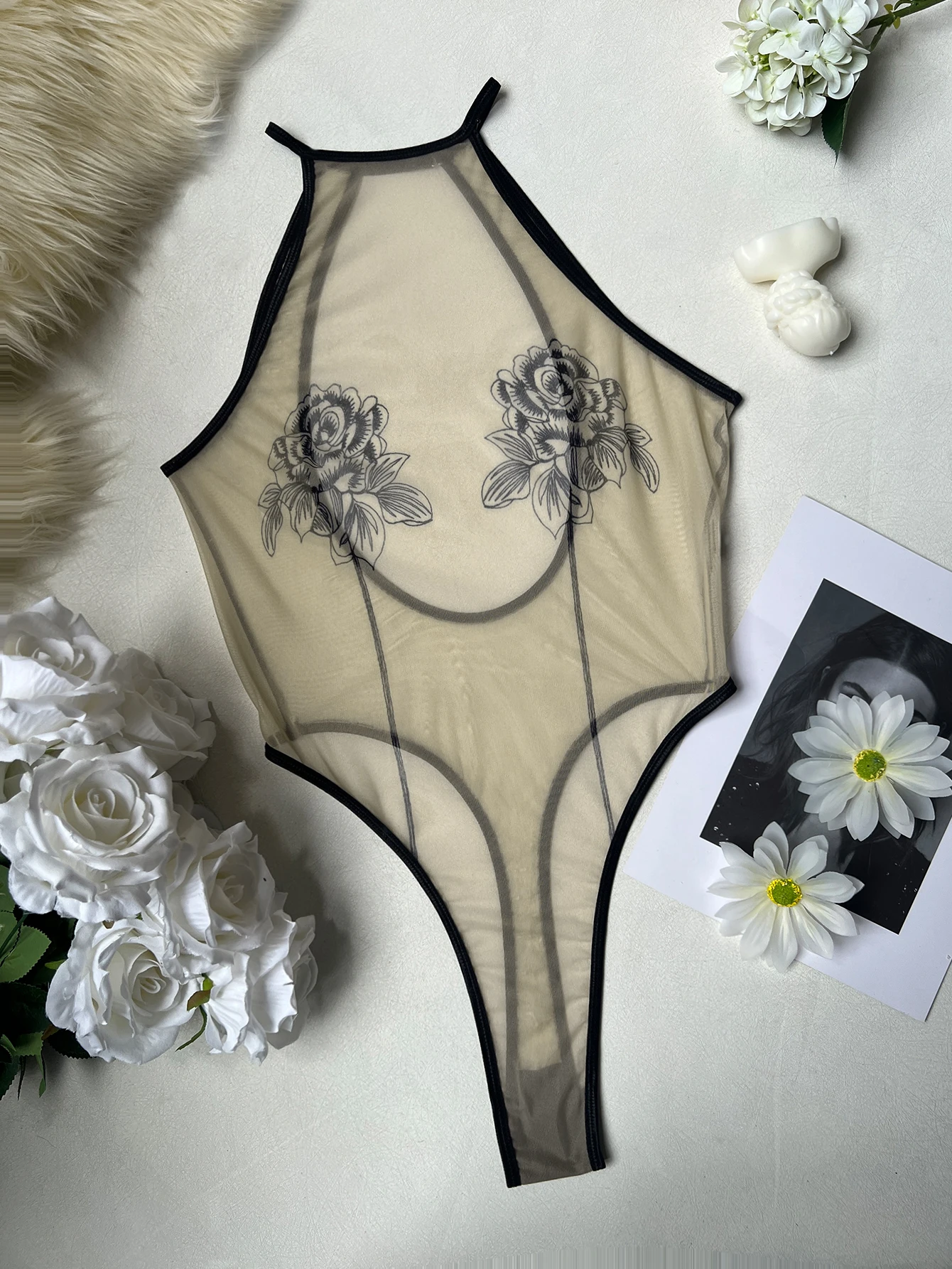 Ellolace Elegant Sexy Lingerie Fascinating Rose Sheer Backless Bodysuit Tempted Honey Body Erotic Allure Dildo Women’s Clubwear