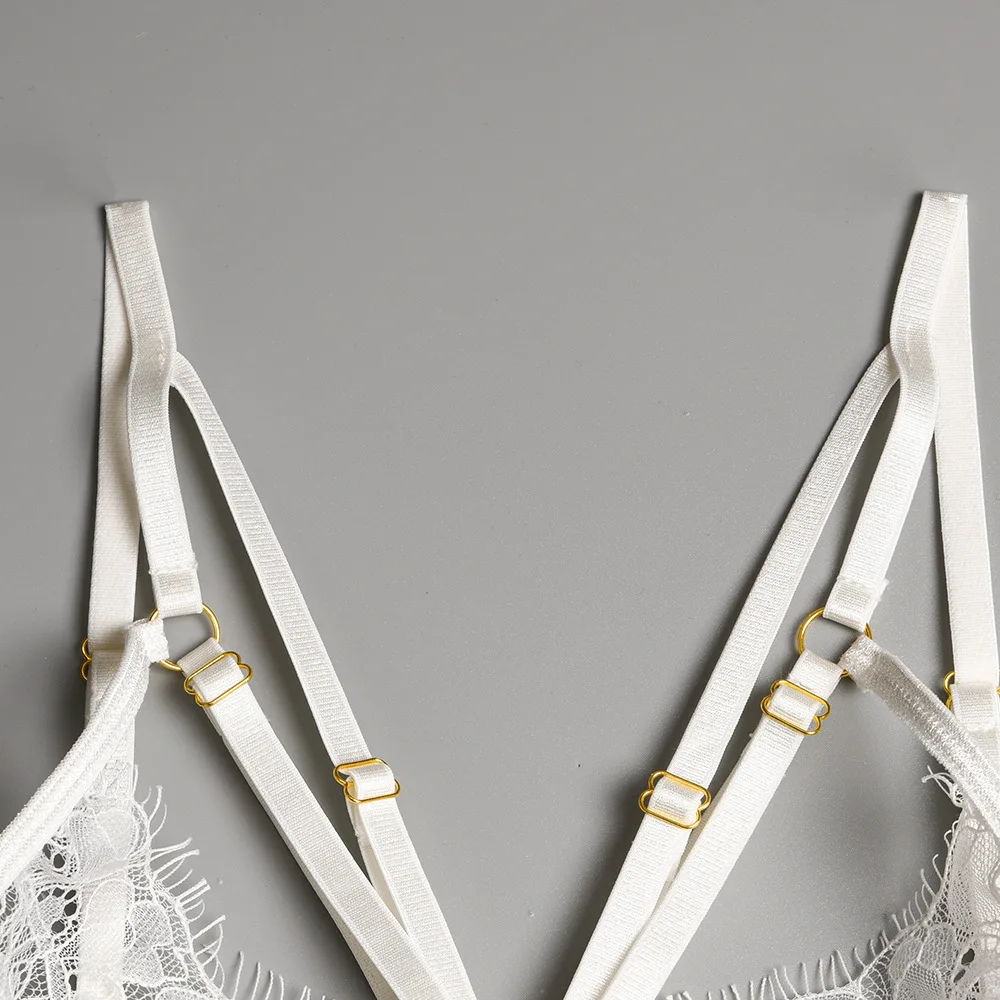 Ellolace Erotic Lingerie Sexy Underwear Lace Hollow Out Transparent Exotic Sets Sensual Underwire Bra and Panty Set with Garters