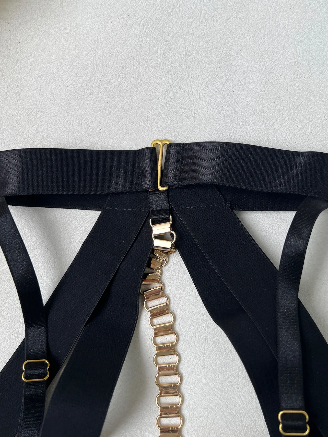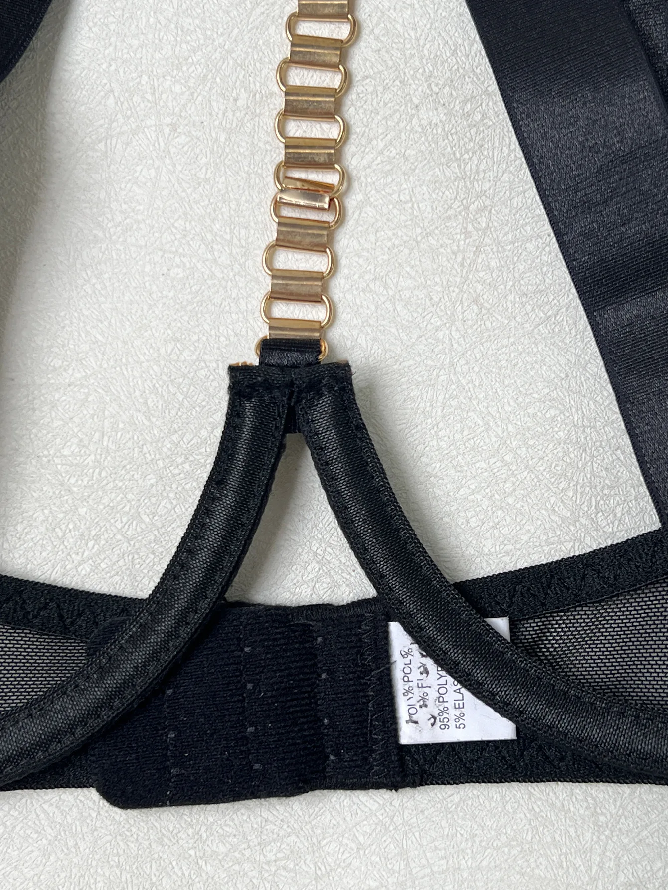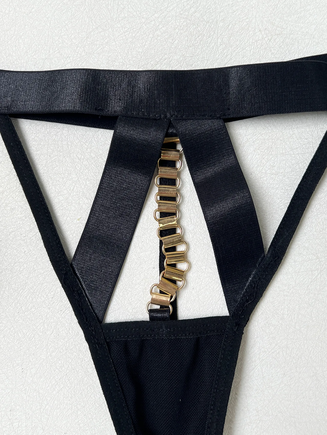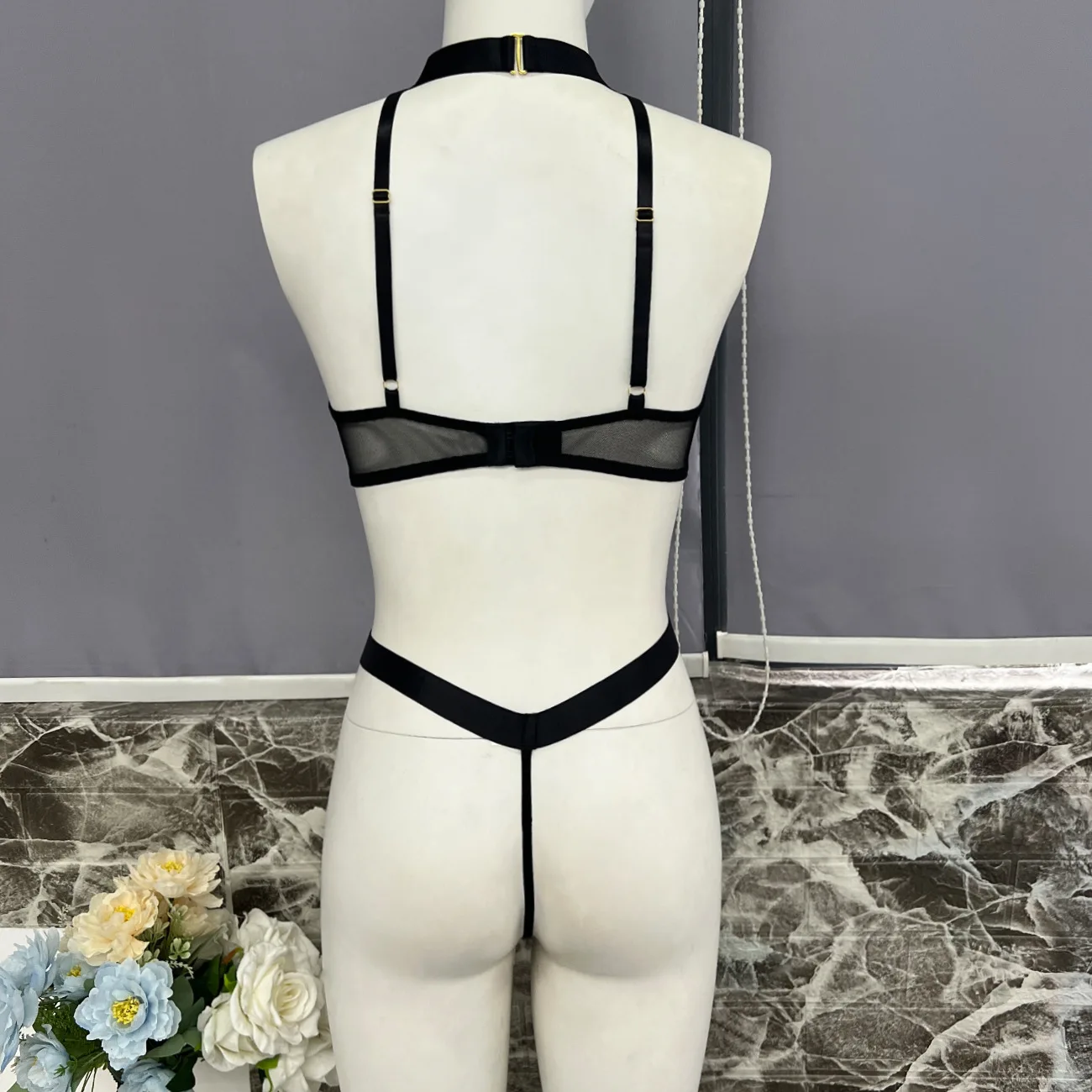 Ellolace Erotic Lingerie Sexy Women Seductive Bandage Halter Hollow Bra Thong 2PC Set Sissy Chain Decor Women’s Clubwear