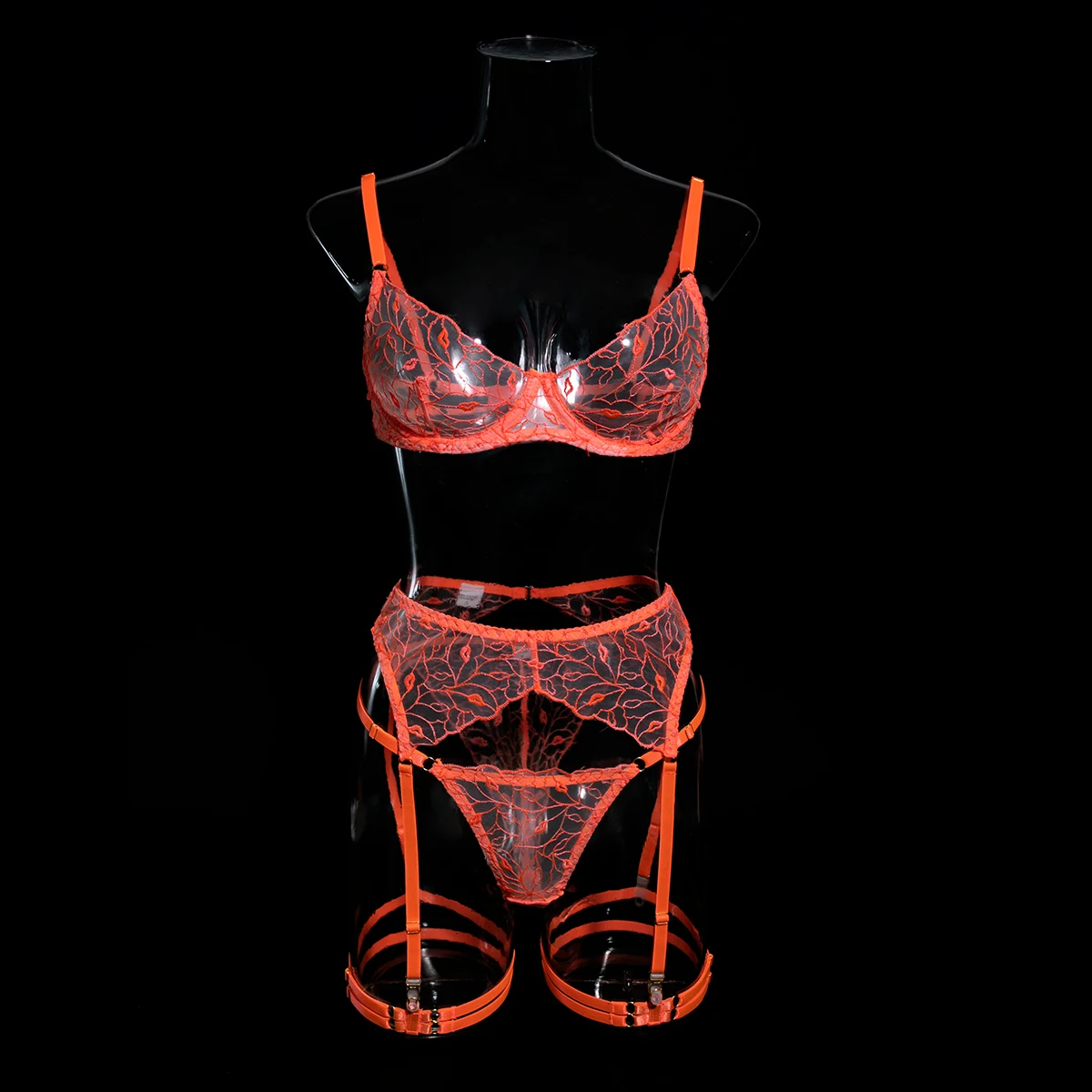 Ellolace Fancy Erotic Lingerie Neon Orange Lace Well-Looking Underwear Desire Hot Girl Fantasy Sexys Naked Bilizna Set Of Sex