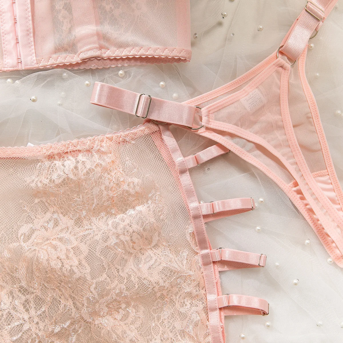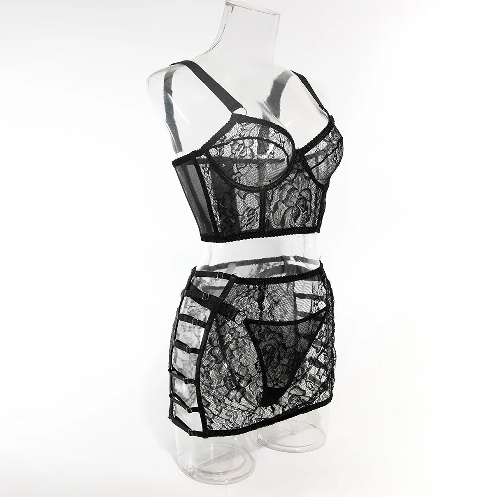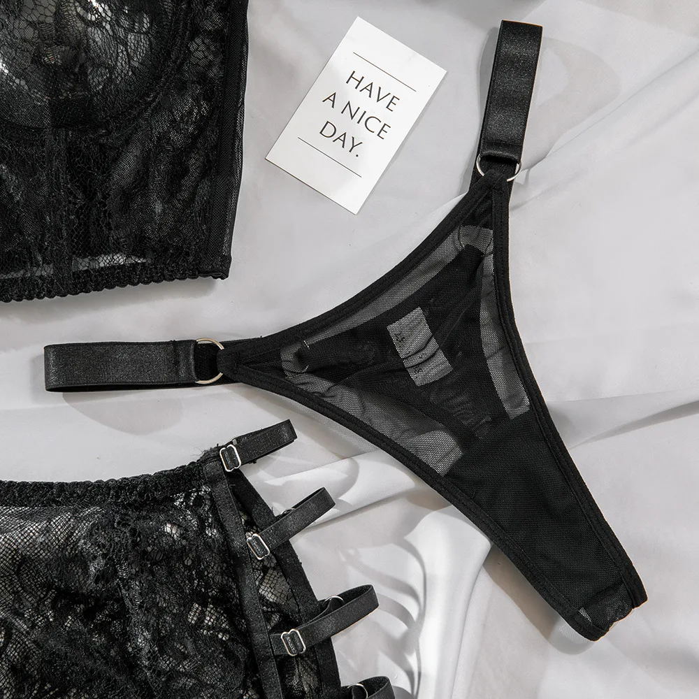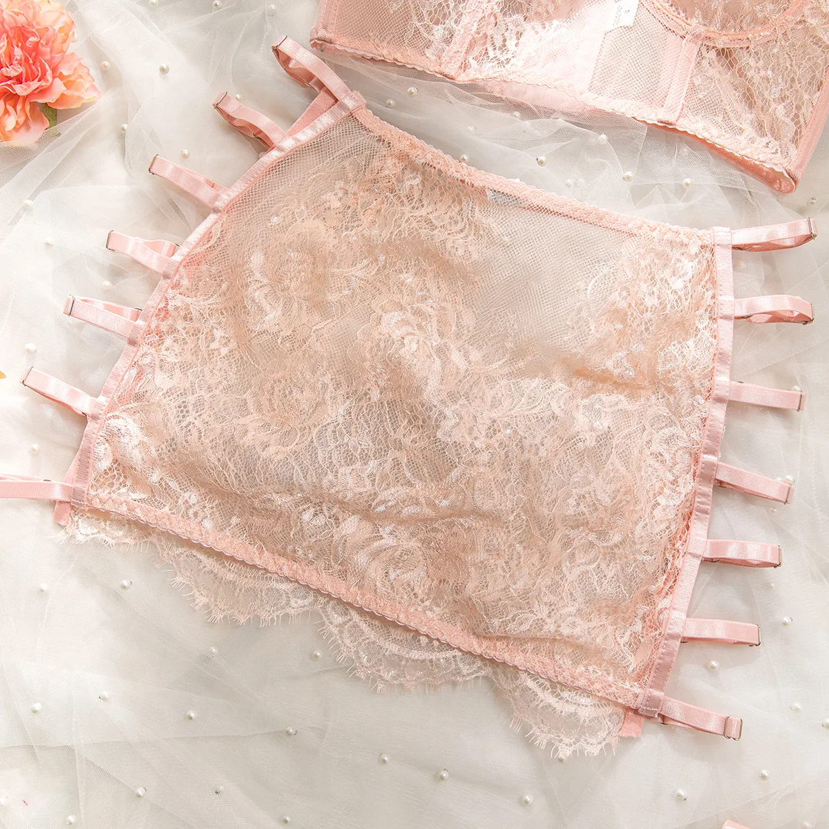 Ellolace Fantasy Sensual Lingerie Sets Side Hollowed Garter Sissy Women’s Ethical Underwear See Thorugh Hot Lace New In Outfits