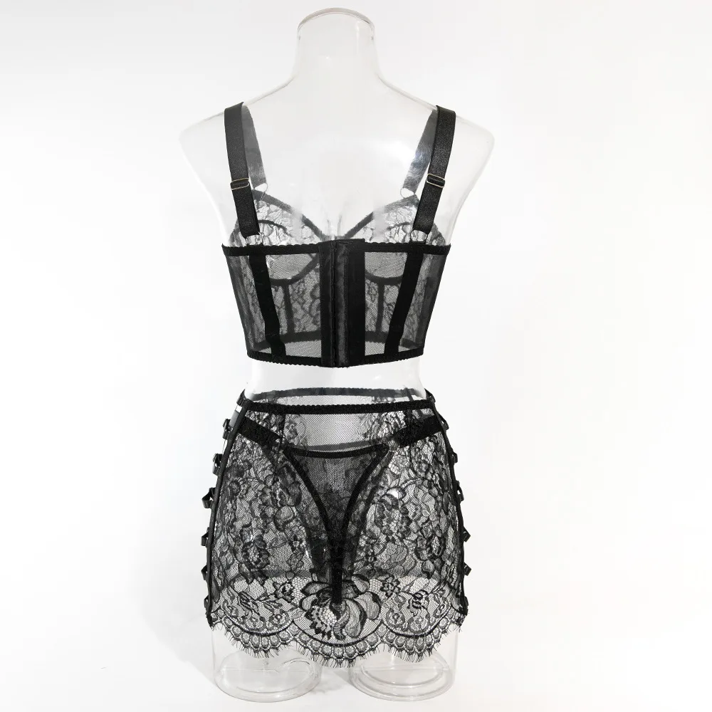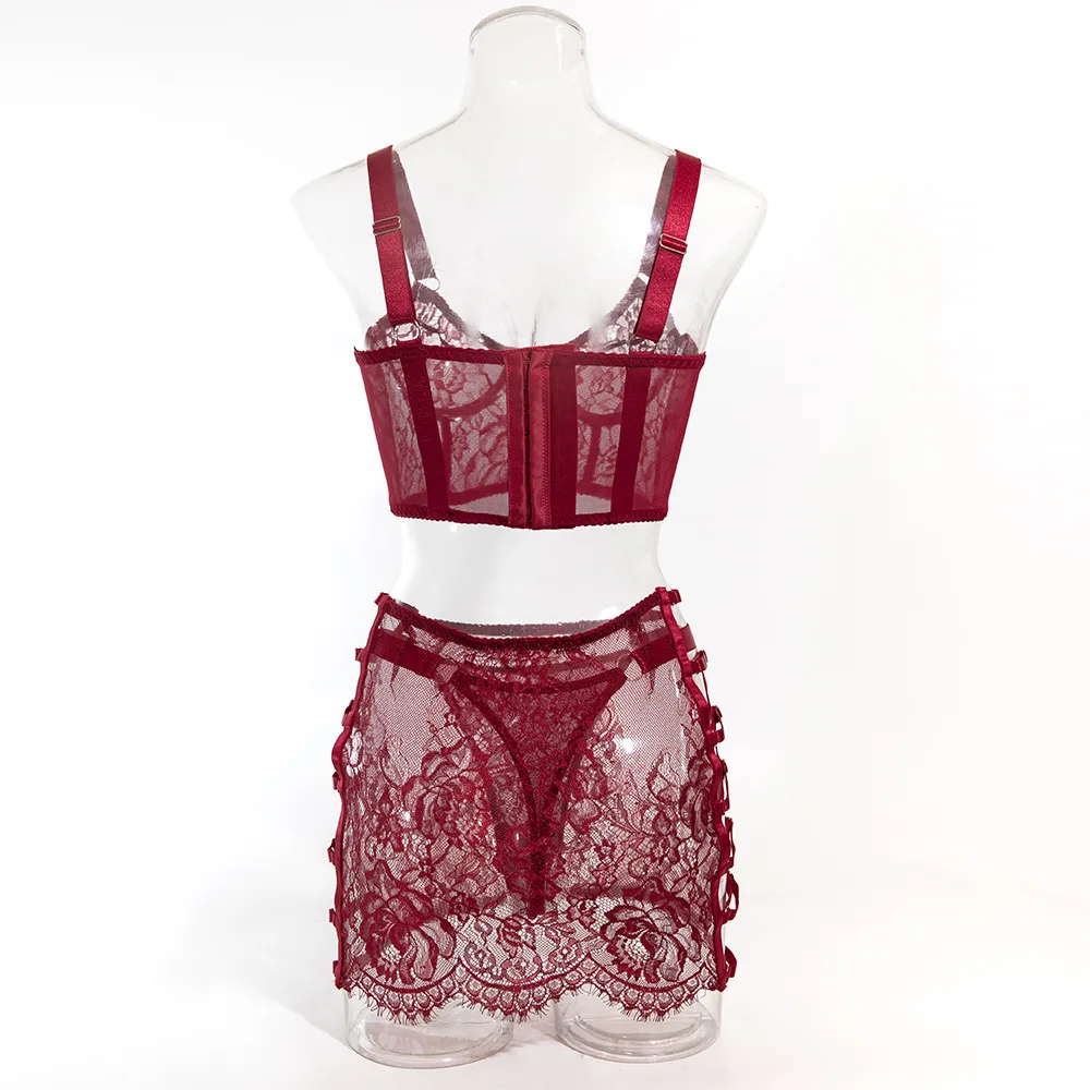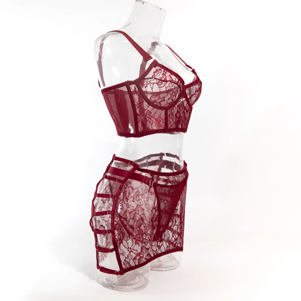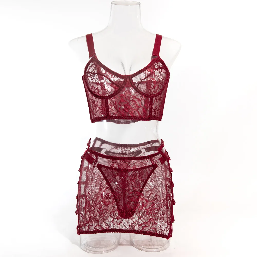 Ellolace Fantasy Sensual Lingerie Sets Side Hollowed Garter Sissy Women’s Ethical Underwear See Thorugh Hot Lace New In Outfits