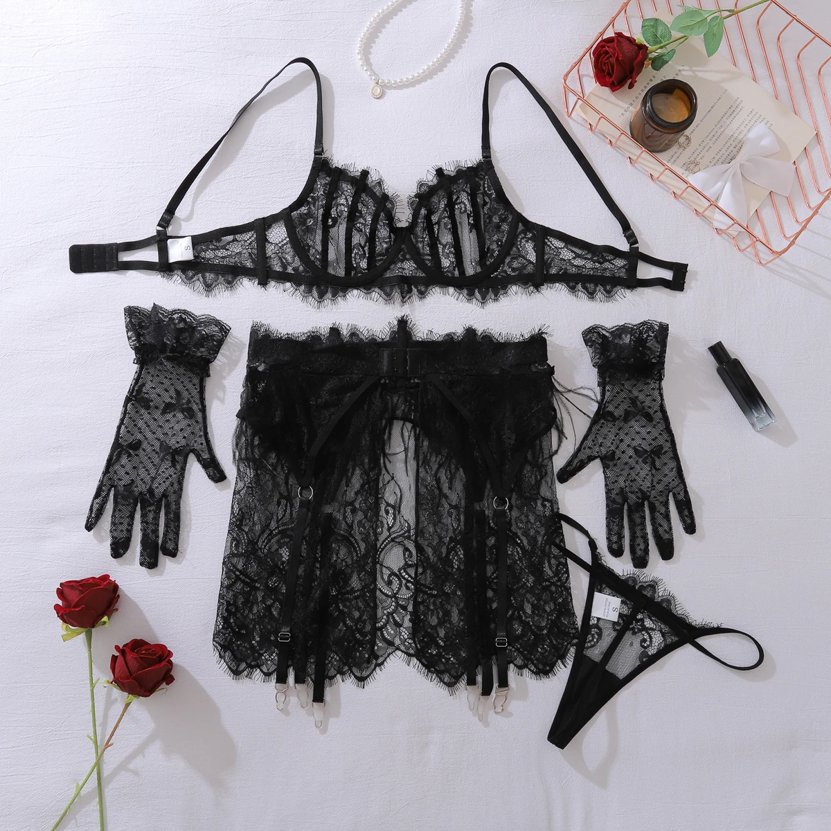 Ellolace Feather Daring Lingerie Woman Sissy Lace Call Of The Night Attractive Chest Suspenders White Ethical Women’s Underwear