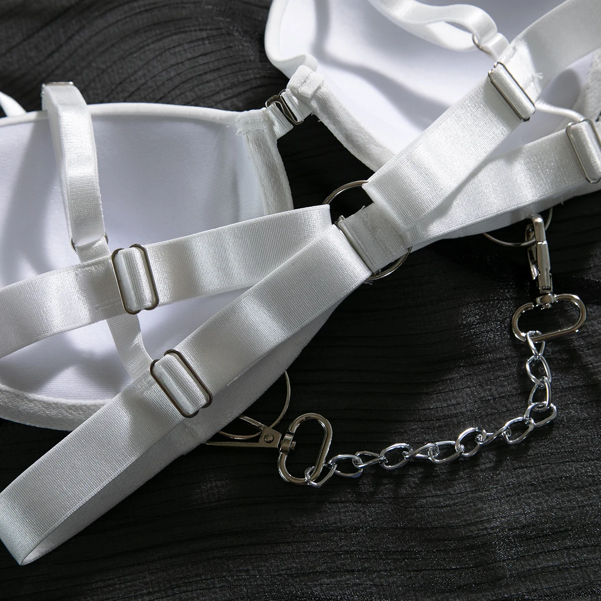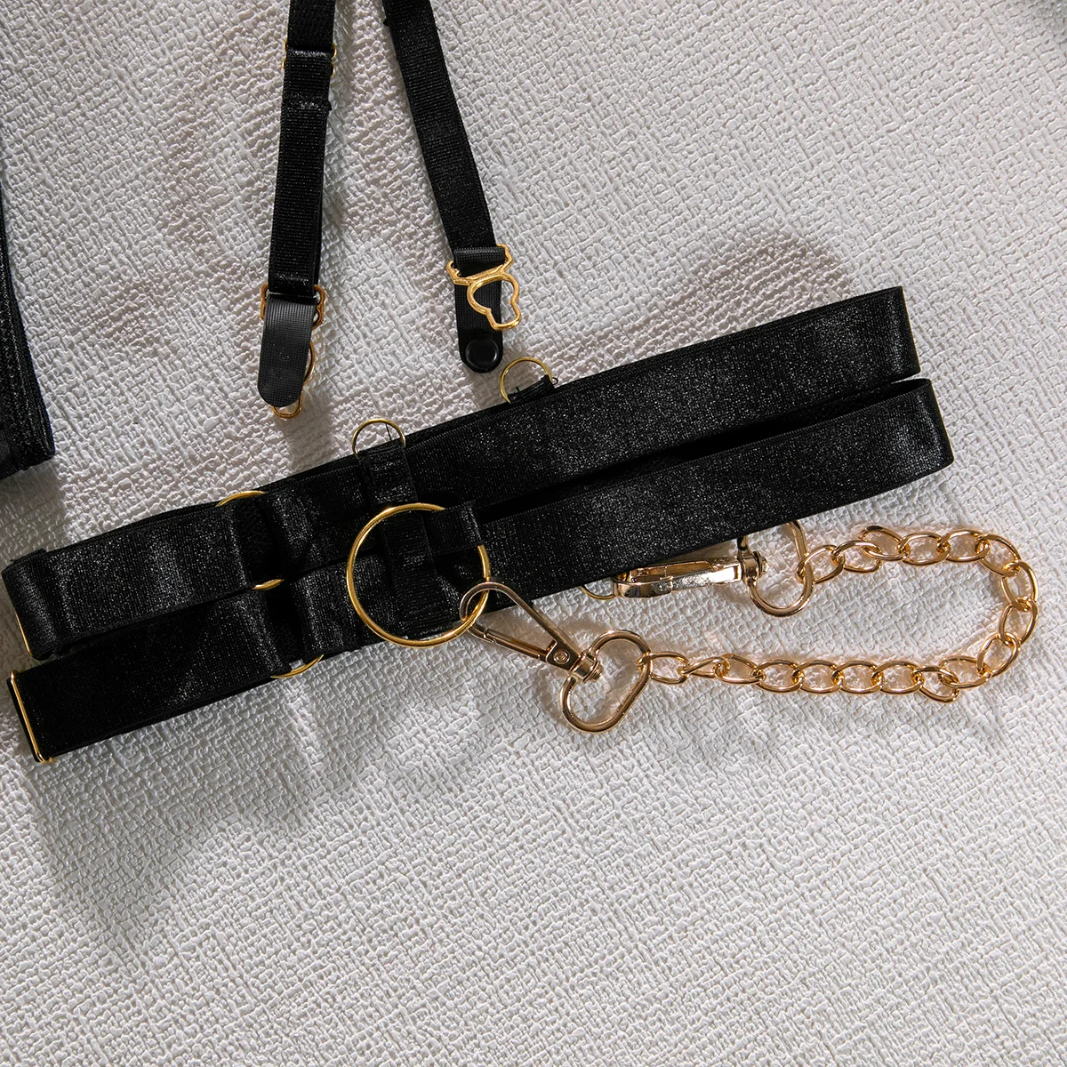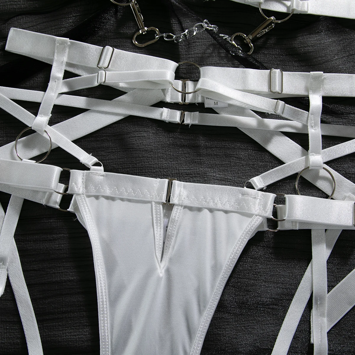 Ellolace Fine Lingerie Sexy Fancy Underwear 5-Piece Delicate Luxury Erotic Sets With Chain Bra And Panty Set Garters Intimate
