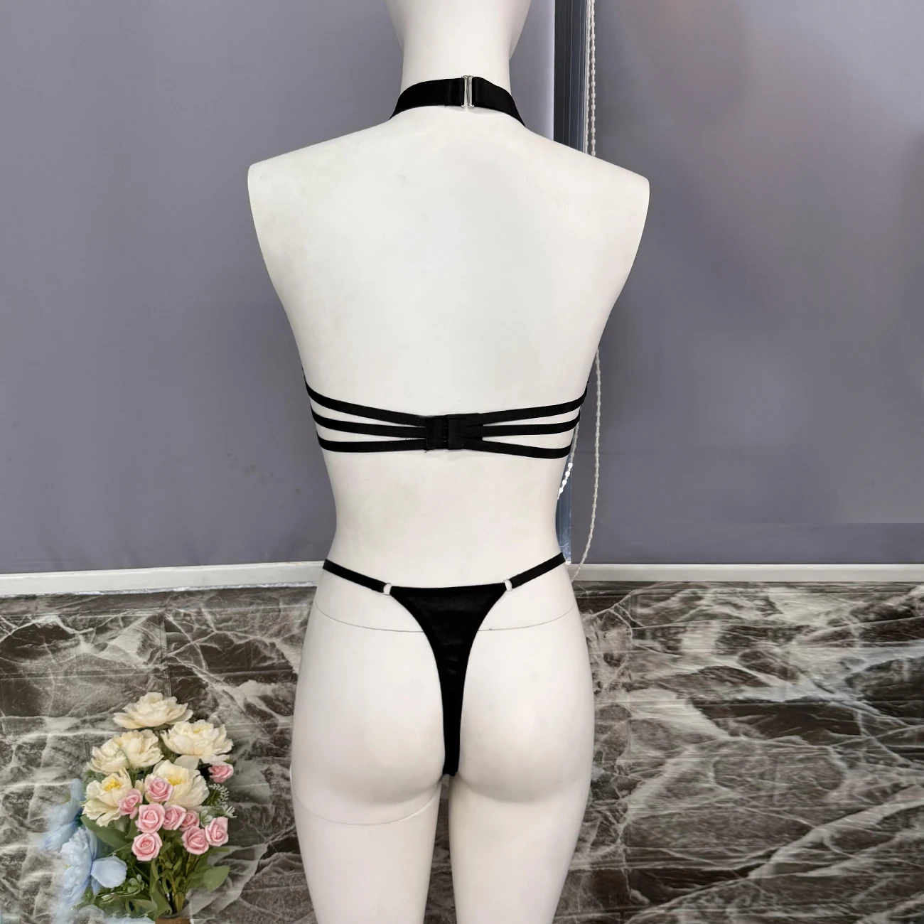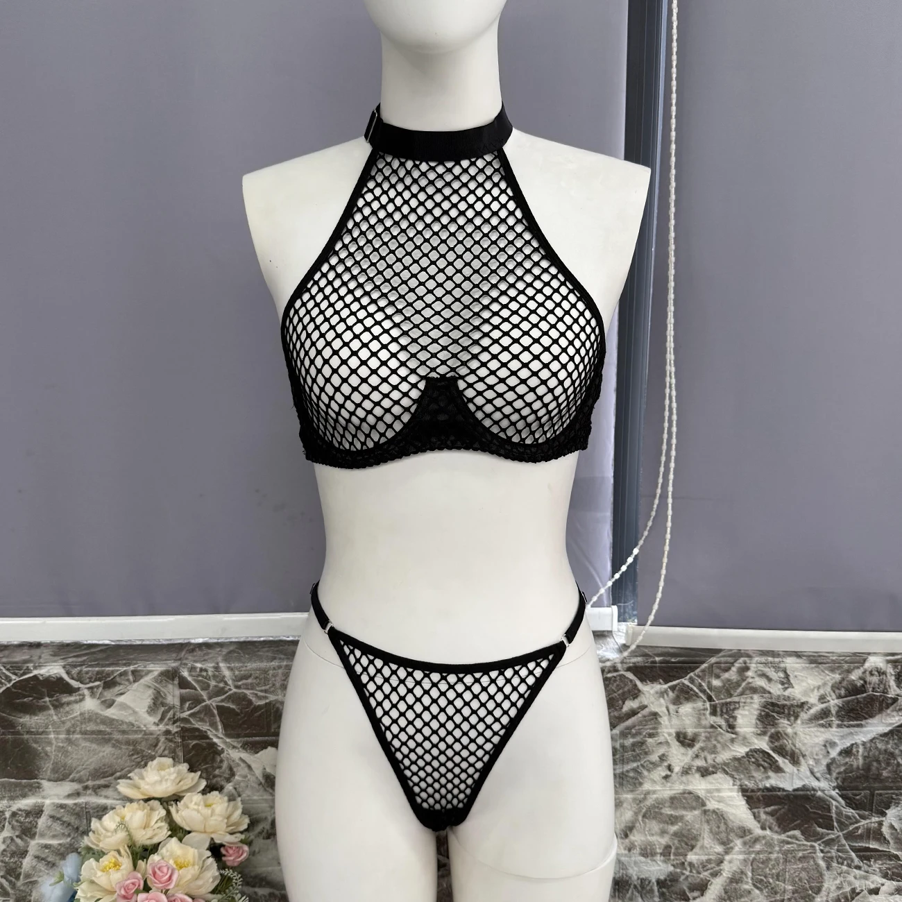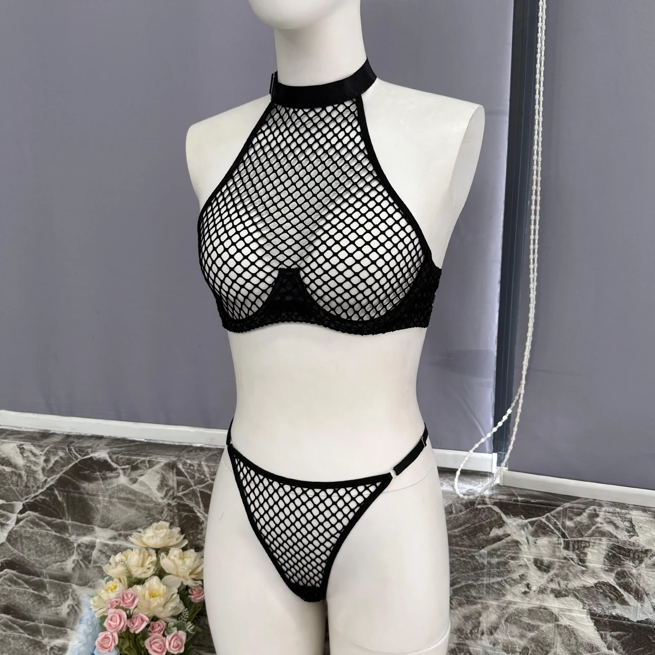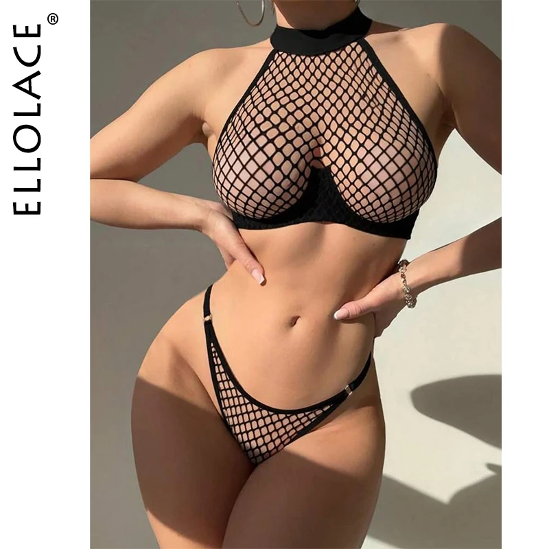 Ellolace Intimate Lingerie Sexy Women Fancy Tank Top Thong 2PC Seductive Hollow Fishnet Party Outfit Hot Girl Backless Underwear