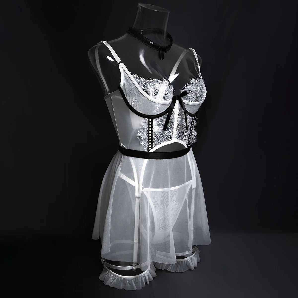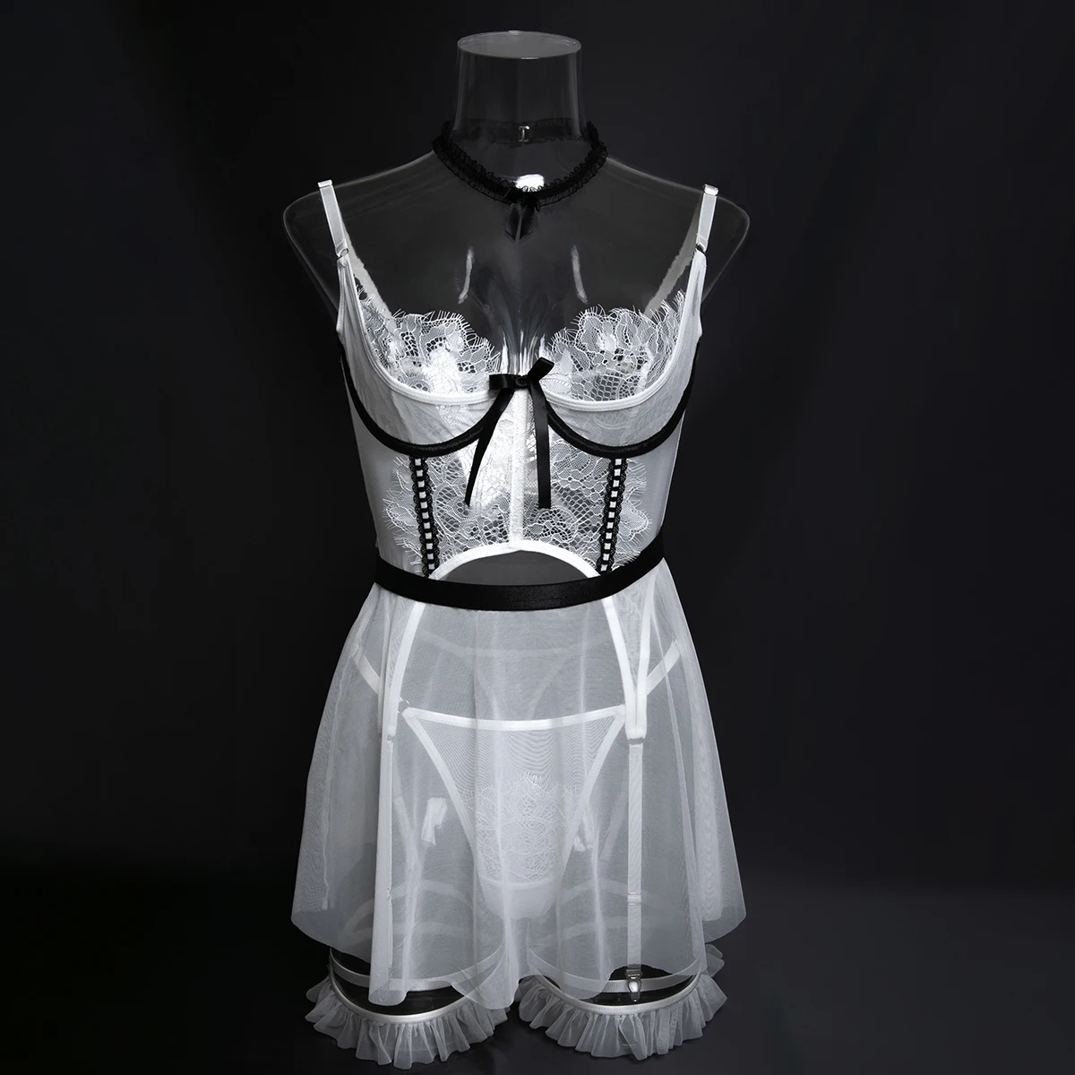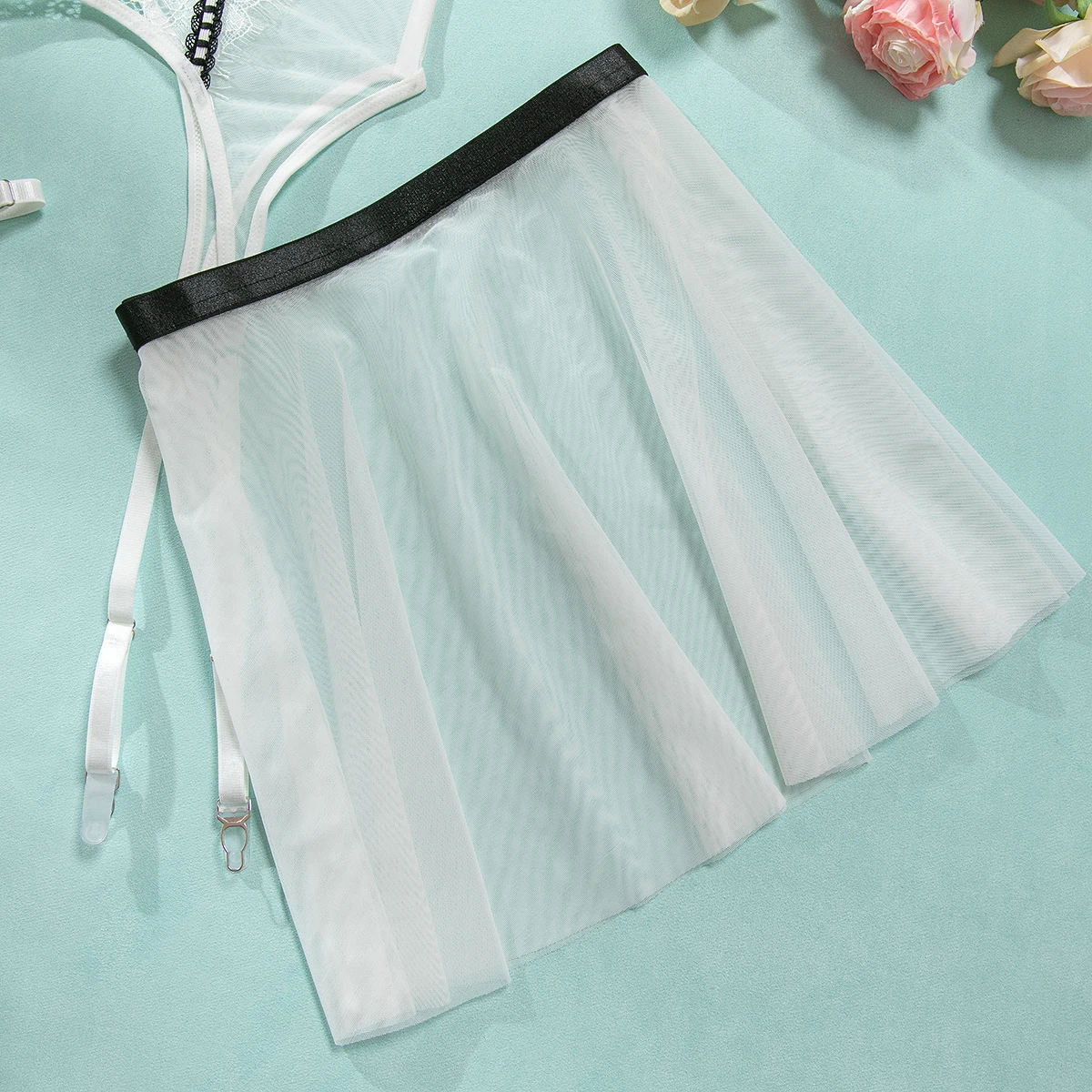 Ellolace Intimate Lingeries Sexy Hot Sensual Tulle Skirt Corset Hilitos 4PC&Leg Circles Set Transparent Lace Hollow Pure Desire