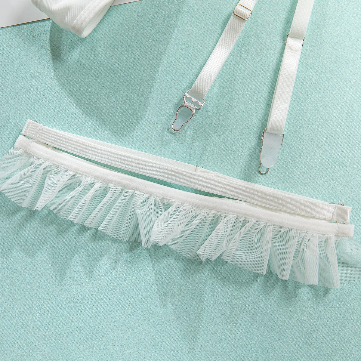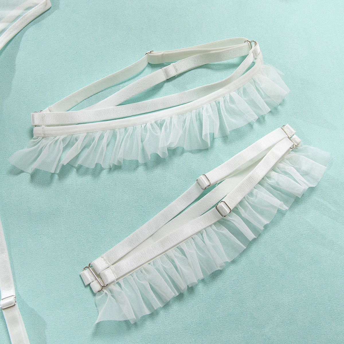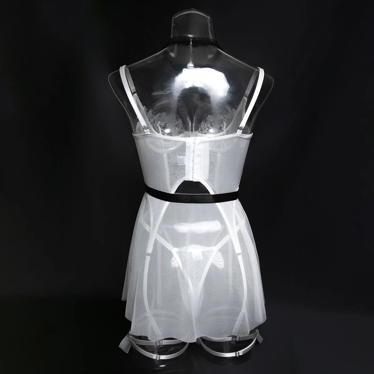 Ellolace Intimate Lingeries Sexy Hot Sensual Tulle Skirt Corset Hilitos 4PC&Leg Circles Set Transparent Lace Hollow Pure Desire