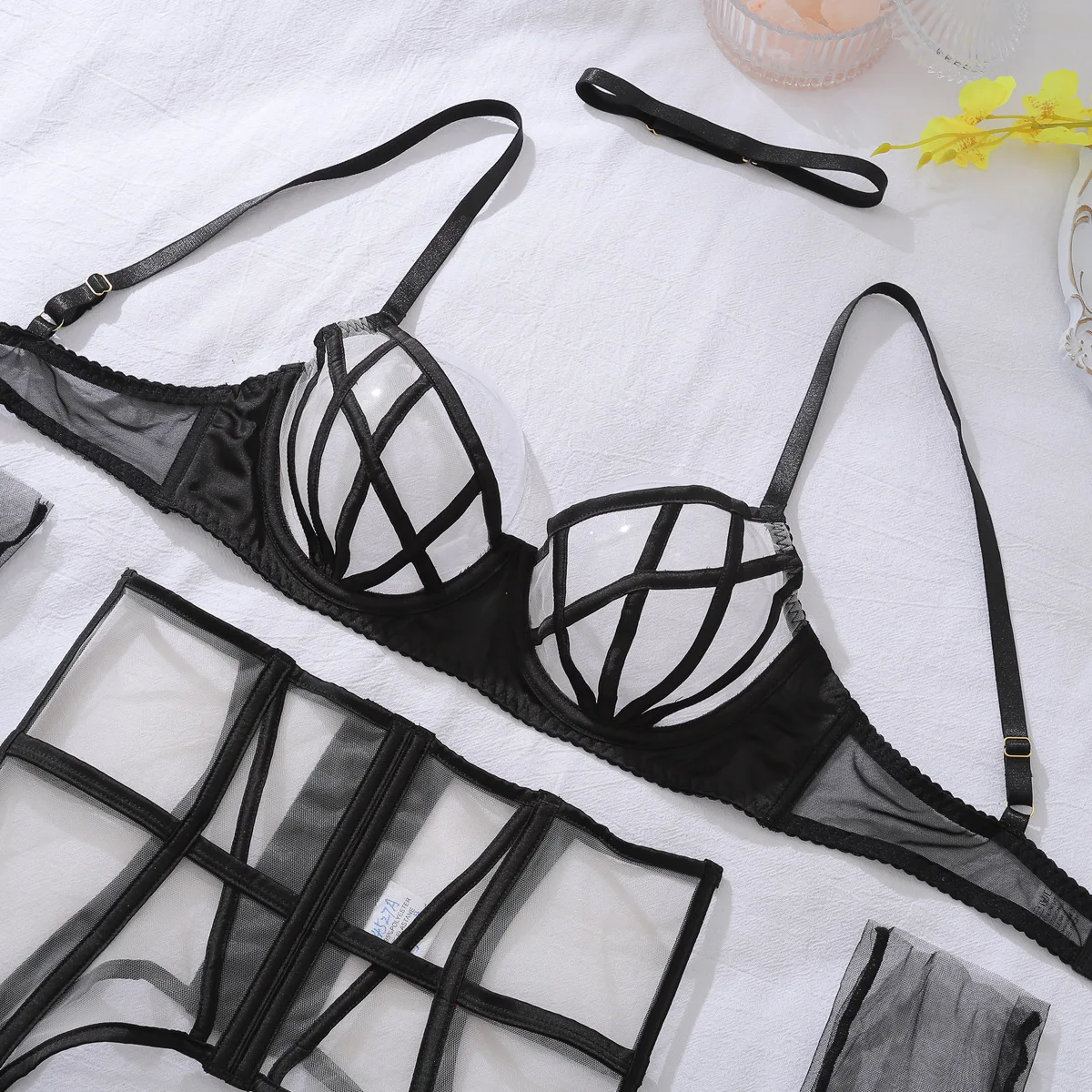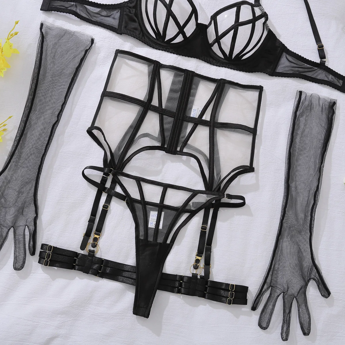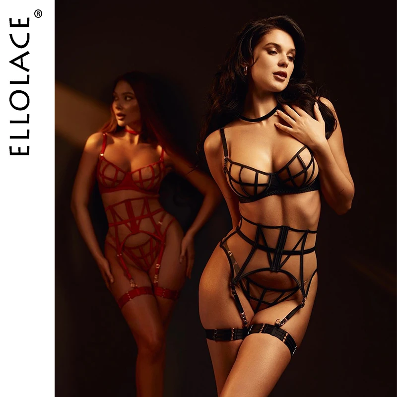 Ellolace Premium Lingerie For Ladies Luxury Diamond Bra Underwear with Choker Gloves Sissy Intimate Ultra Sexy Women Outfit