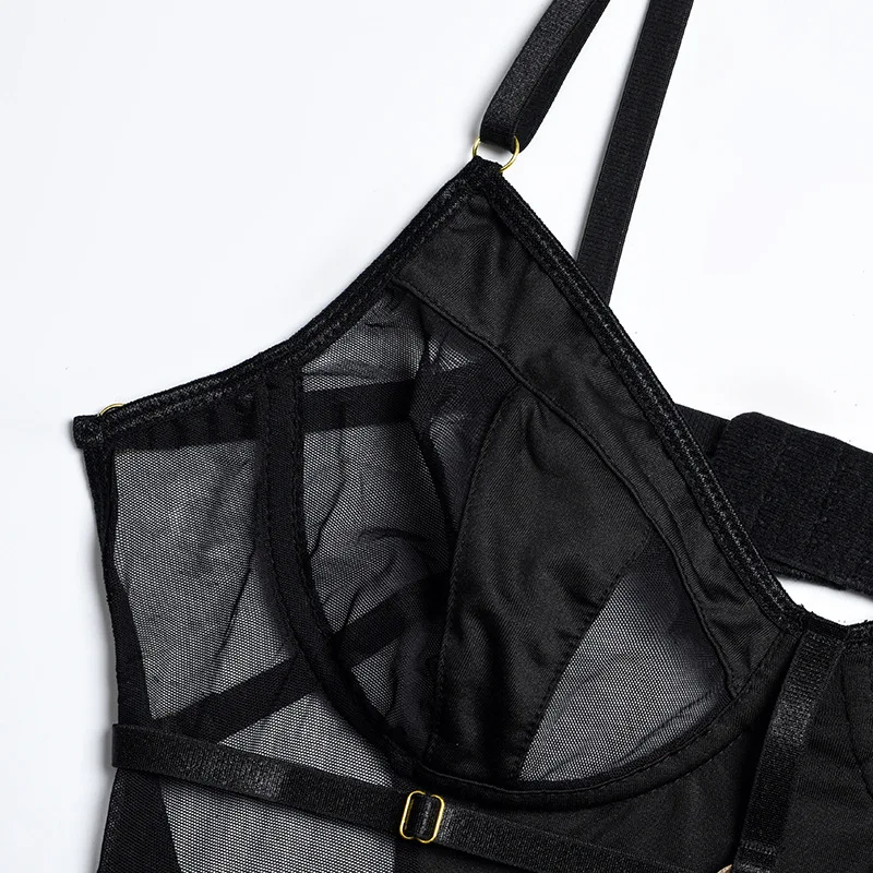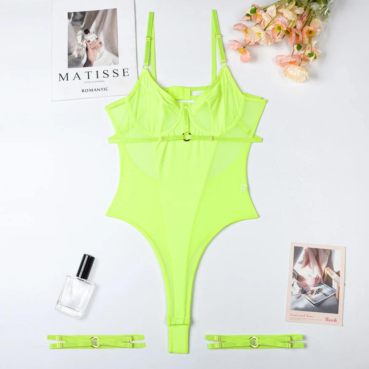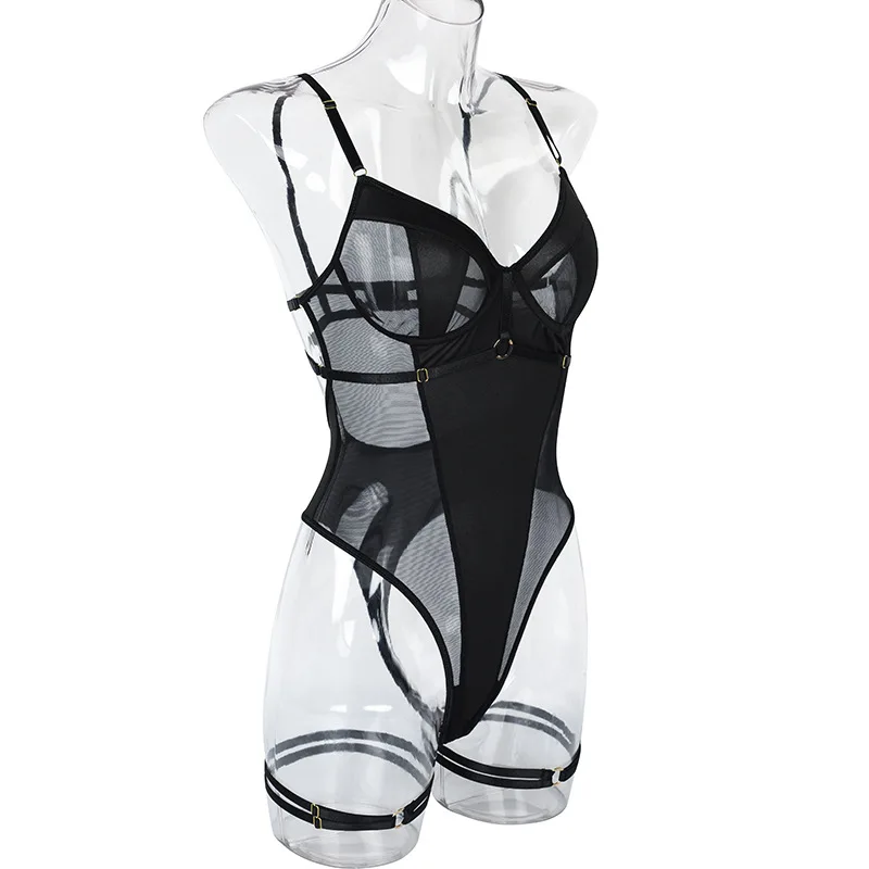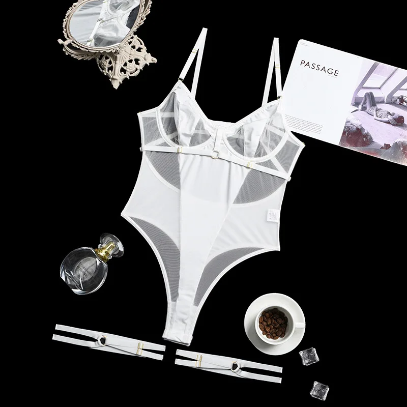 Tips: Bodysuit + 2 Thigh Rings ; Bra Have Underwire, Crotchless Body.