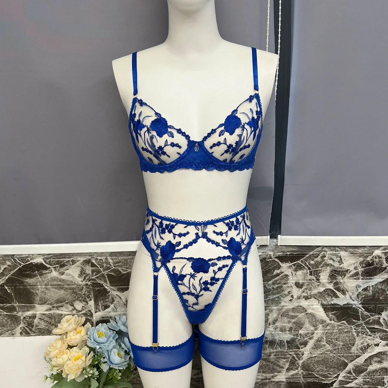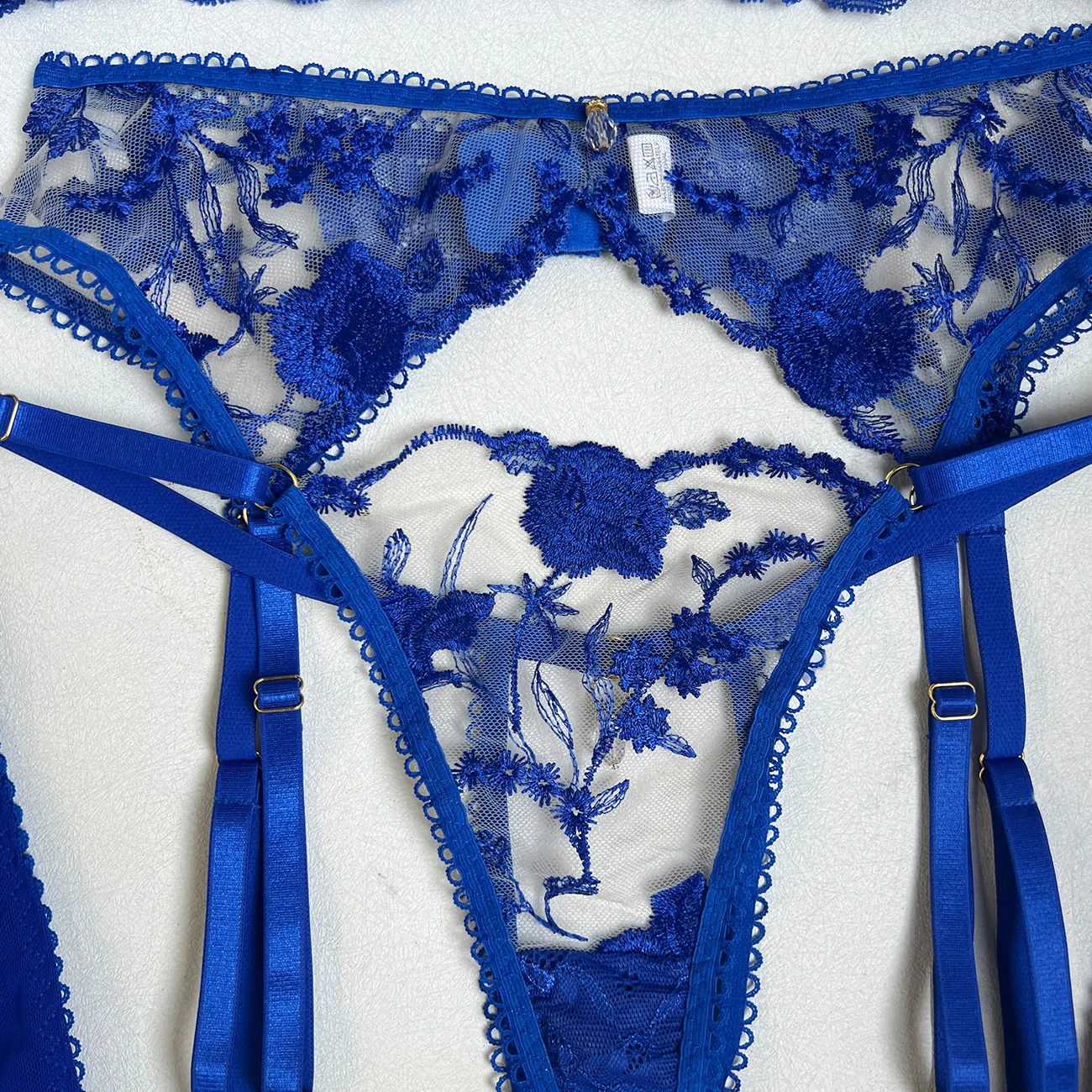 Ellolace Sensual Lingerie Erotic Transparent Bra Ultra Sexy 5-Piece Crotchless Thongs Attractive Chest Suspenders Underwear