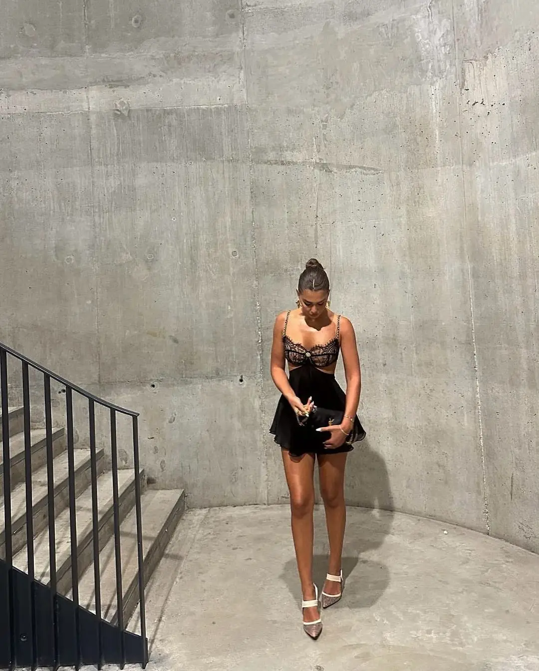 Ellolace Sexy Adult Female Dress Chain Shoulder Straps Backless Set Fancy Cut Out on Sides Bra Hilitos Women Tutu Organza Outfit