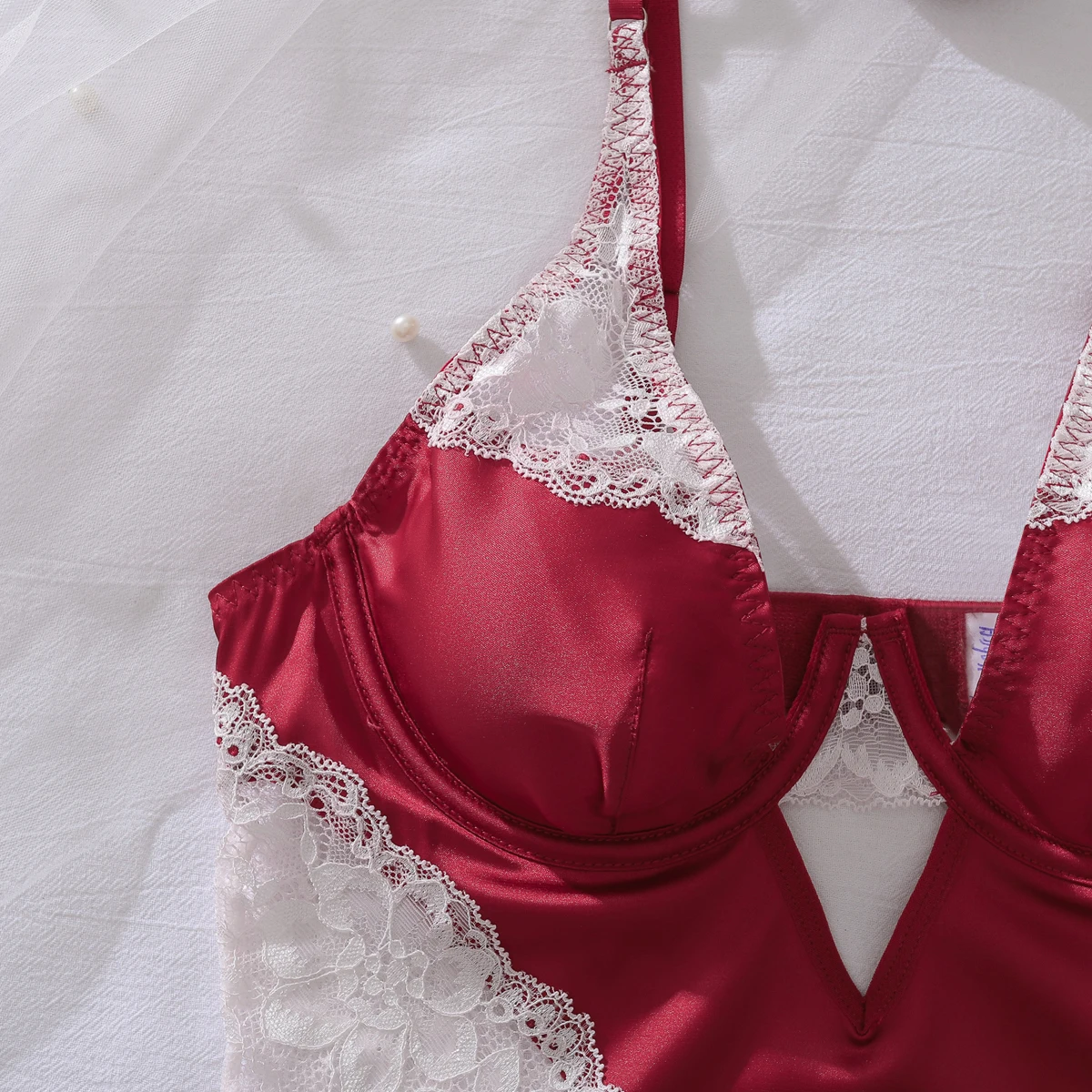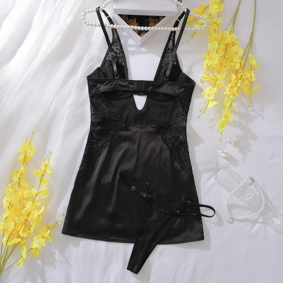 Ellolace Sexy Deep-V Neck Satin Dress Sexy Lingerie Lace Patchwork Split Sissy Night Dress Women Slip Dress Silk Nightwear