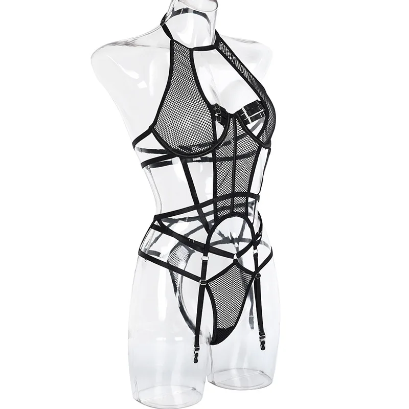 Ellolace Sexy Exotic Costumes Sensual Lingerie Transparent Bandage Erotic Apparel Porn Goth Mesh Sex Outfit Sissy Top and Briefs