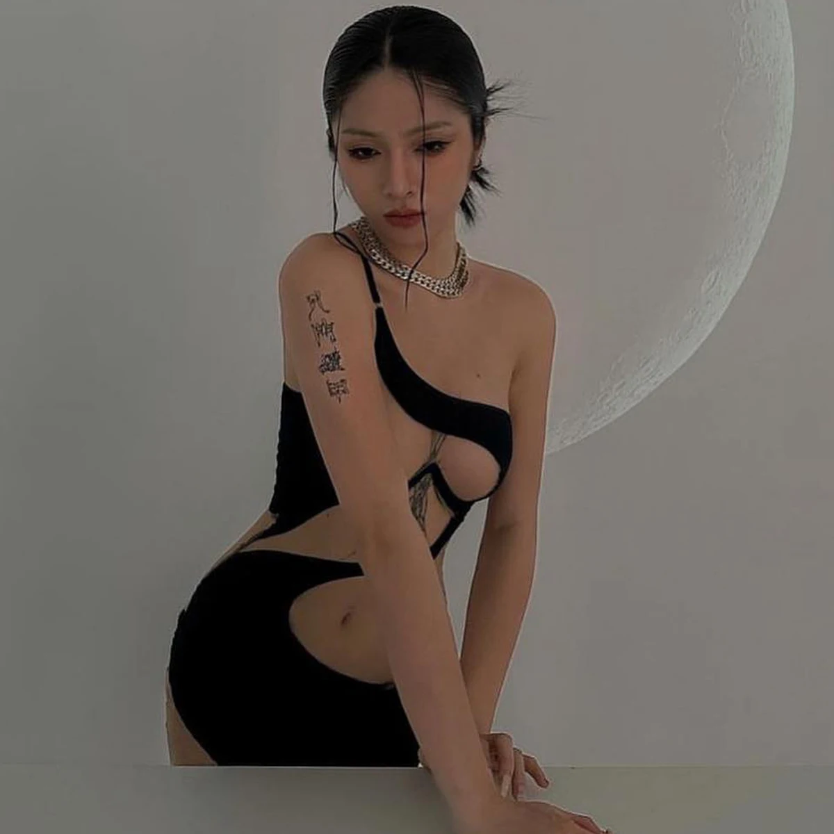 Ellolace Sexy Summer Dresses 2025 See Through Irregular Splicing Short Black Dress Single Shoulder Strap Sexy Outfits