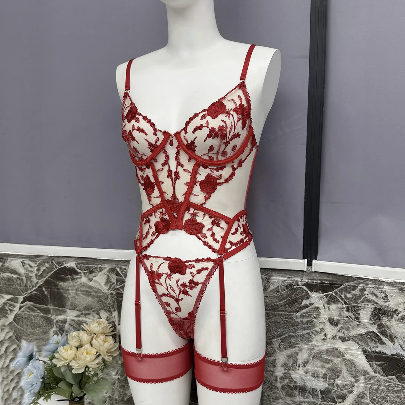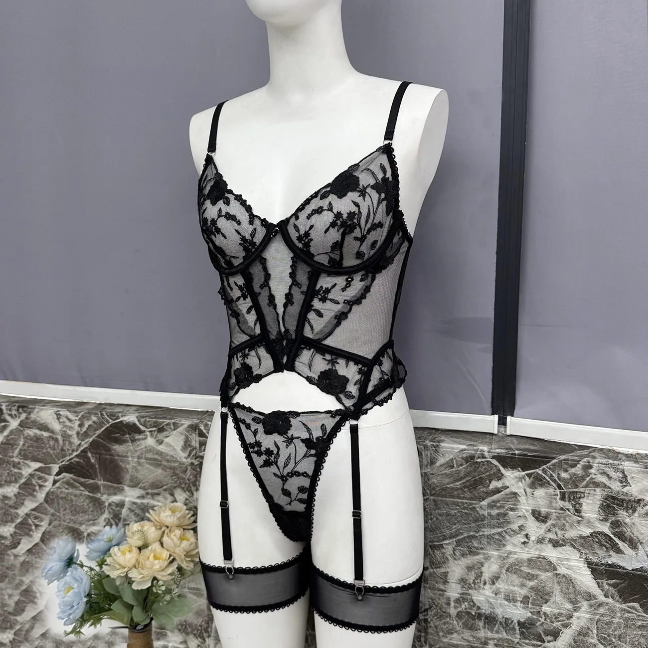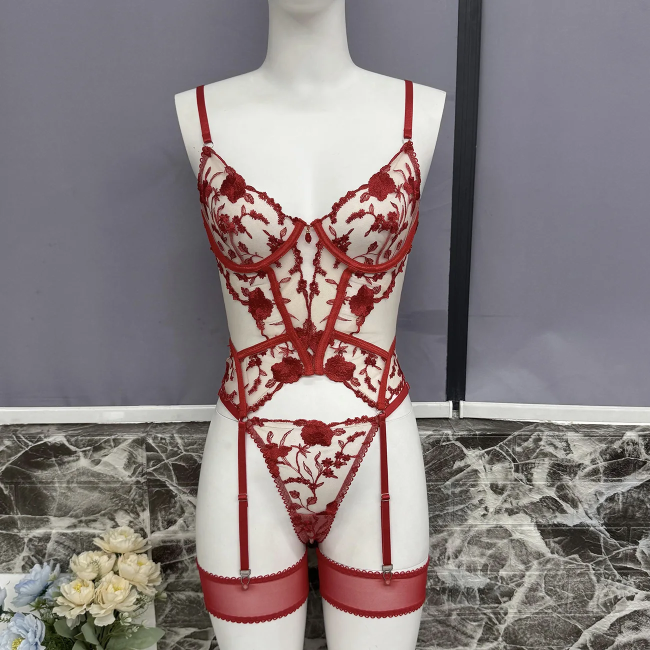Ellolace Stunning Sexy Underwear Women Romantic Honey Holiday Boudoir Corset Lingerie Set Wedding Embroidery Female Clothing