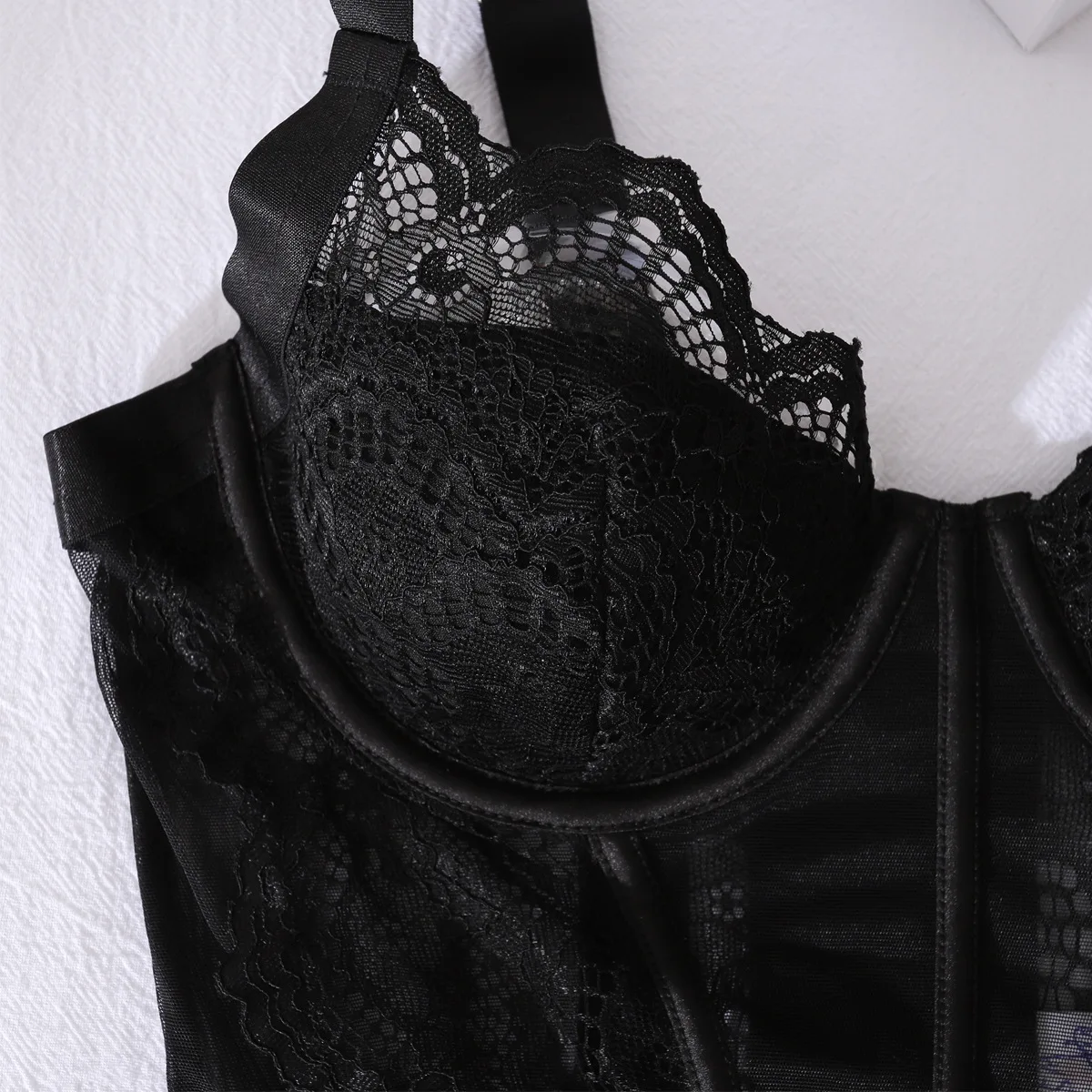 Ellolace Willowy Hot Hot Lingerie Tempted Corset Dress Thong 2PC Stiff See Through Lace Mini Body Premium Women’s Underwear