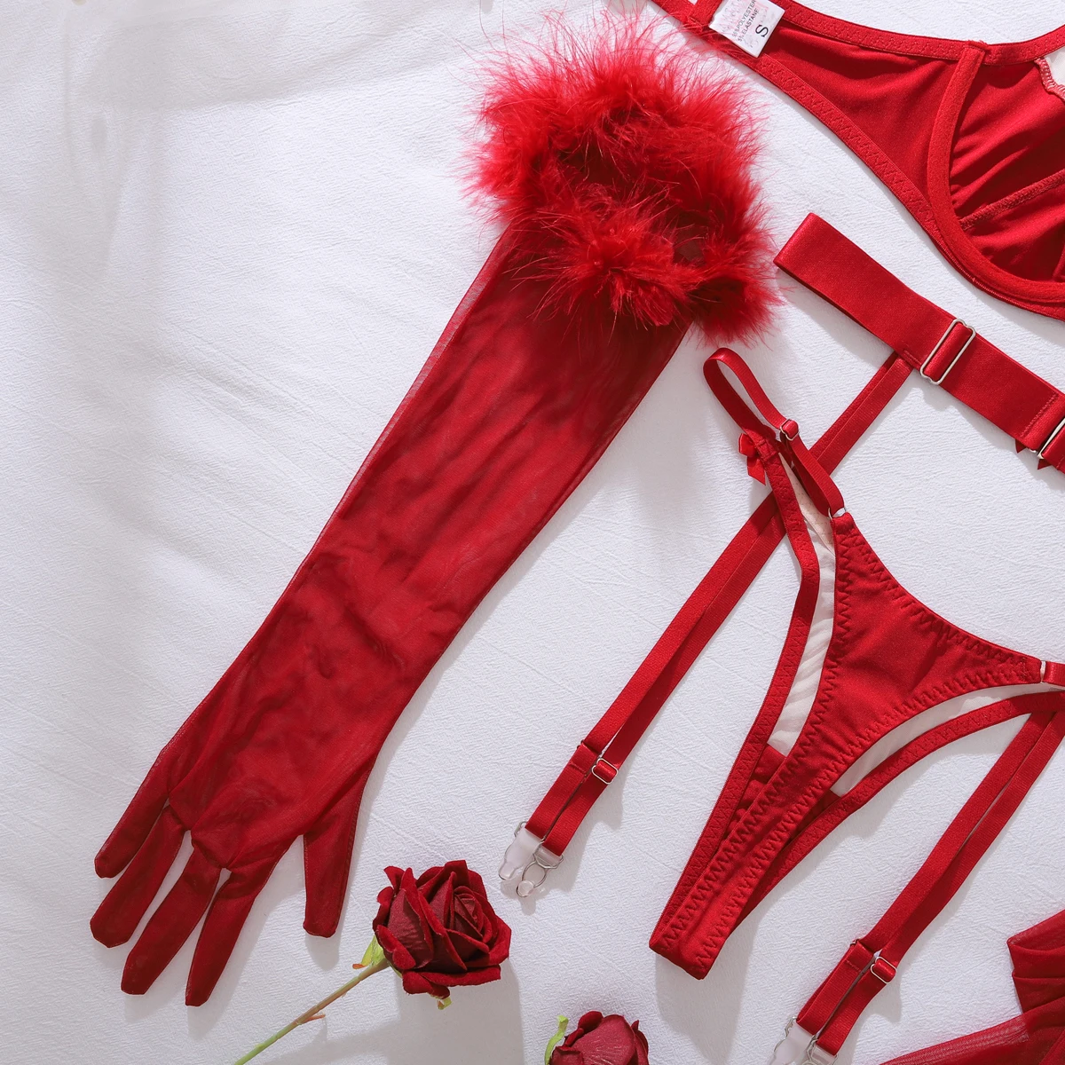 Ellolace Wilowy Lingerie Sexy Women Bra Set 3PC with Gloves&Stockings&Choker Elegant Christmas Splicing Cougar Boudoir Underwear