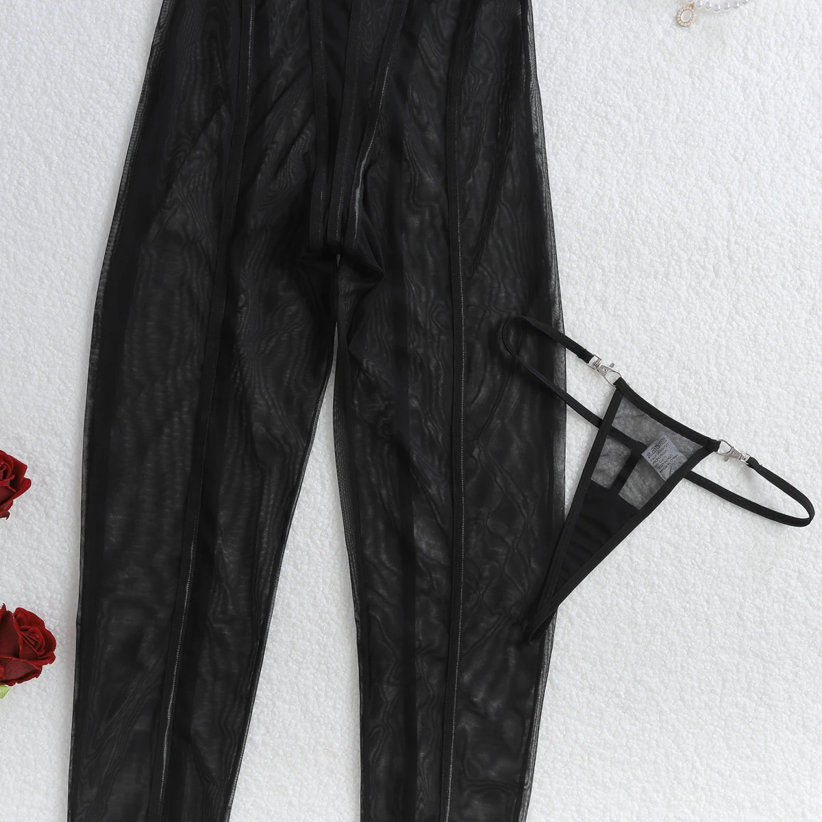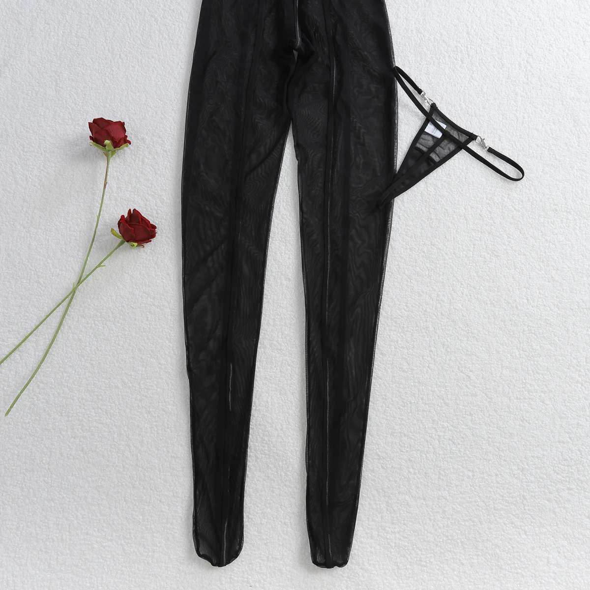 Be the first to review “Elloloace Porno Sexy Lingerie Exclusive Stripes Halter Sleeveless Jumpsuit 2PC Set Metal Fastener Thong Backless Sheer Bodysuit” Cancel reply