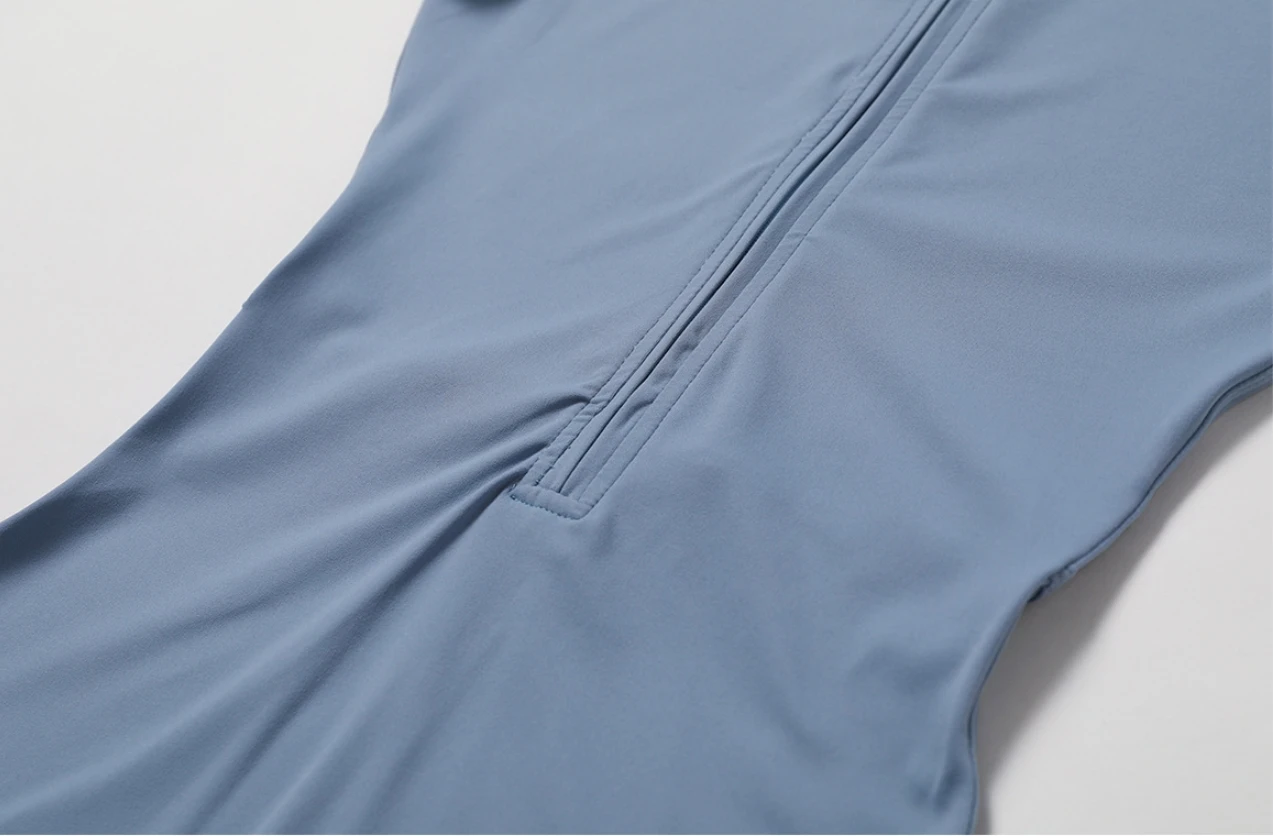 European and American nude one-piece yoga suit with stand up collar, half zipper, short sleeved fitness jumpsuit, tight fitting