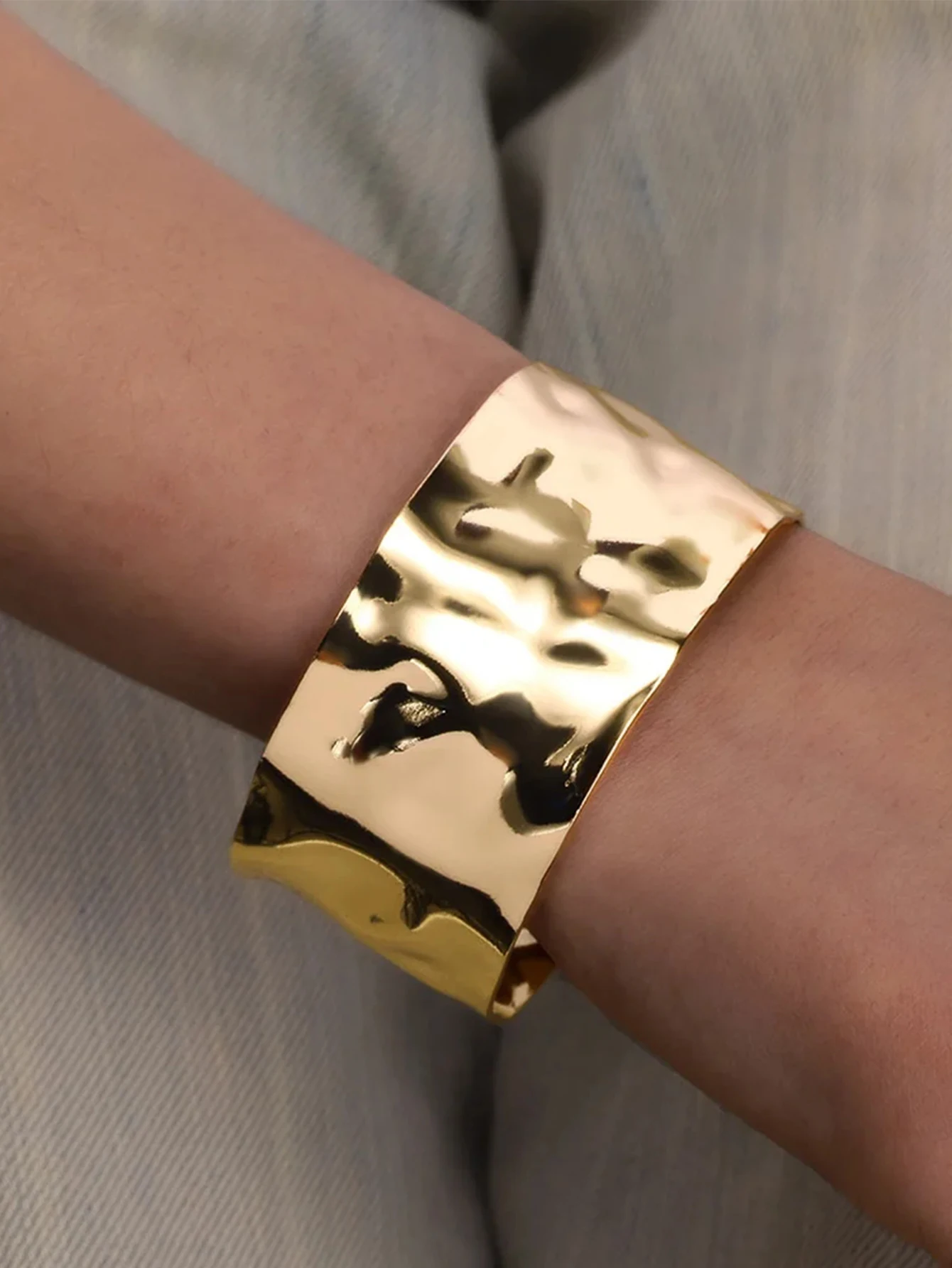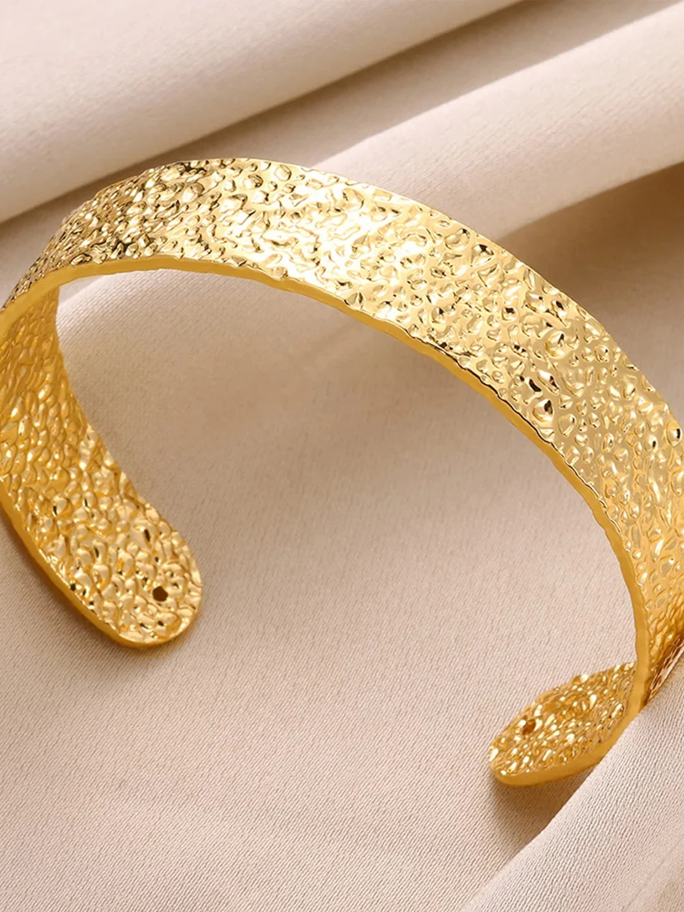 Exquisite Classic Bump Pattern Openning Bangles Bracelet For Women Cuff Bracelet Gold Color Stainless Steel Hand Ornament Gift