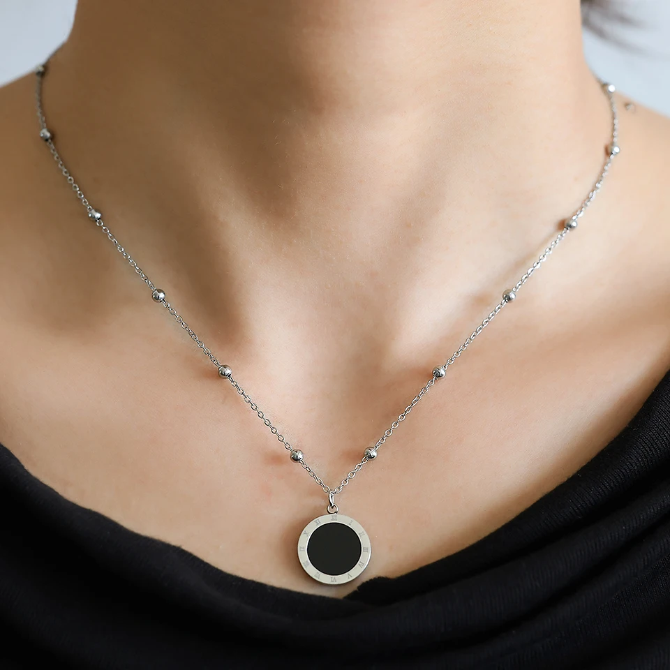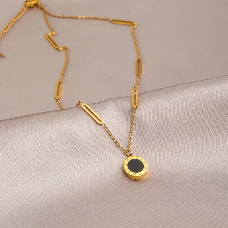 Fashion Roman Digital Wafer Pendant Necklace Stainless Steel Party Jewelry for Women Sexy Choker
