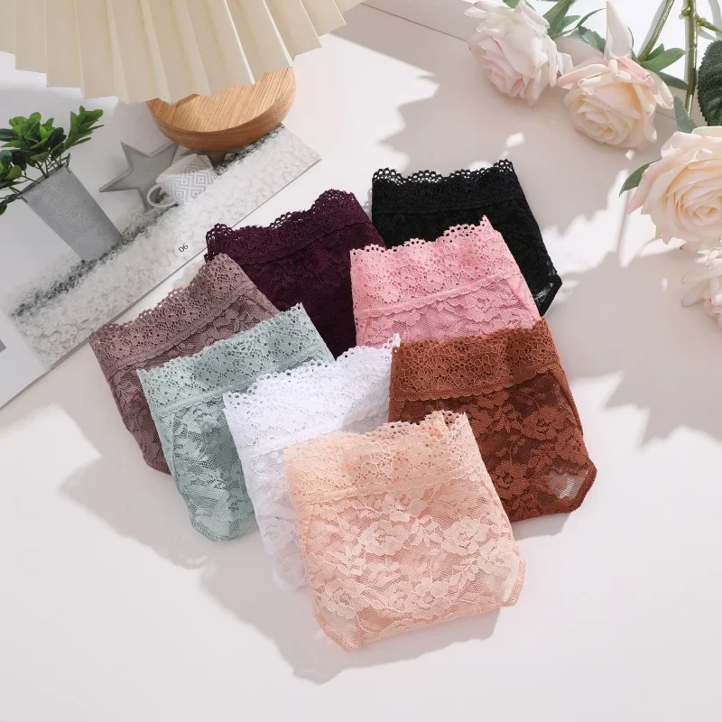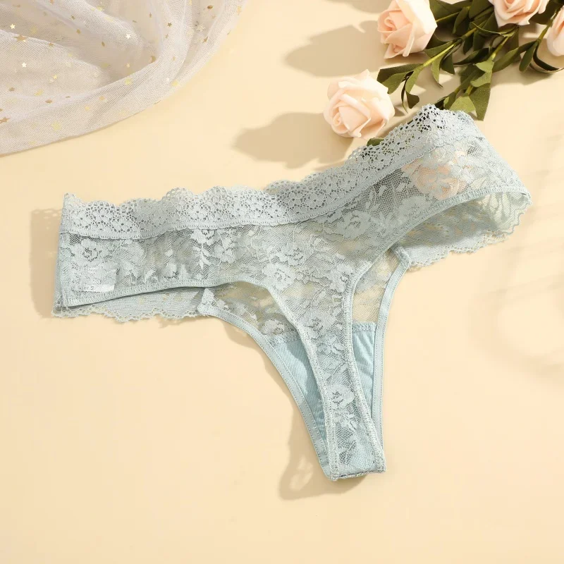 Finetoo 3Pcs Women Lace Sexy Thongs Low-Rise Trendy Floral Briefs Sexy Soft Ladies Underwear Underpants Female Flowery Lingerie