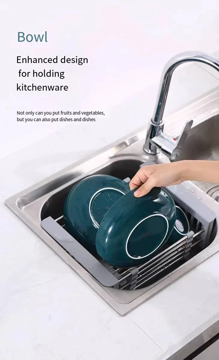 Folding Kitchen Sink Drain Rack, Stainless Steel Dish Drain Basket for Washing Dishes, Space-Saving Sink Organizer