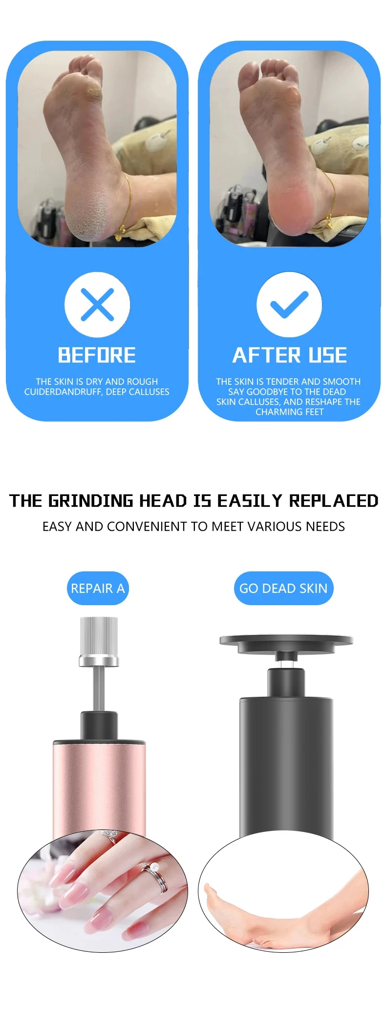 Foot Care File Electric Foot Callus Remover Leg Heels Remove Dead Skin Pedicure Tool Set and Replacement Sandpaper