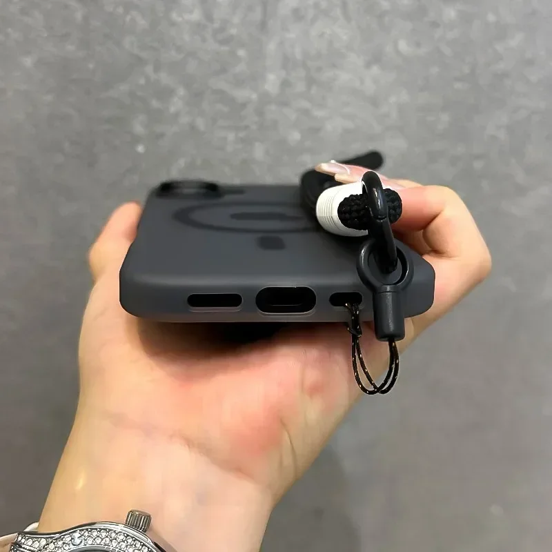 Luxury With Lanyard Magsafe Matte Phone Case For iPhone 11 12 13 14 15 16 17 Pro Max Plus Air Magnetic Bumper Back Cases Cover