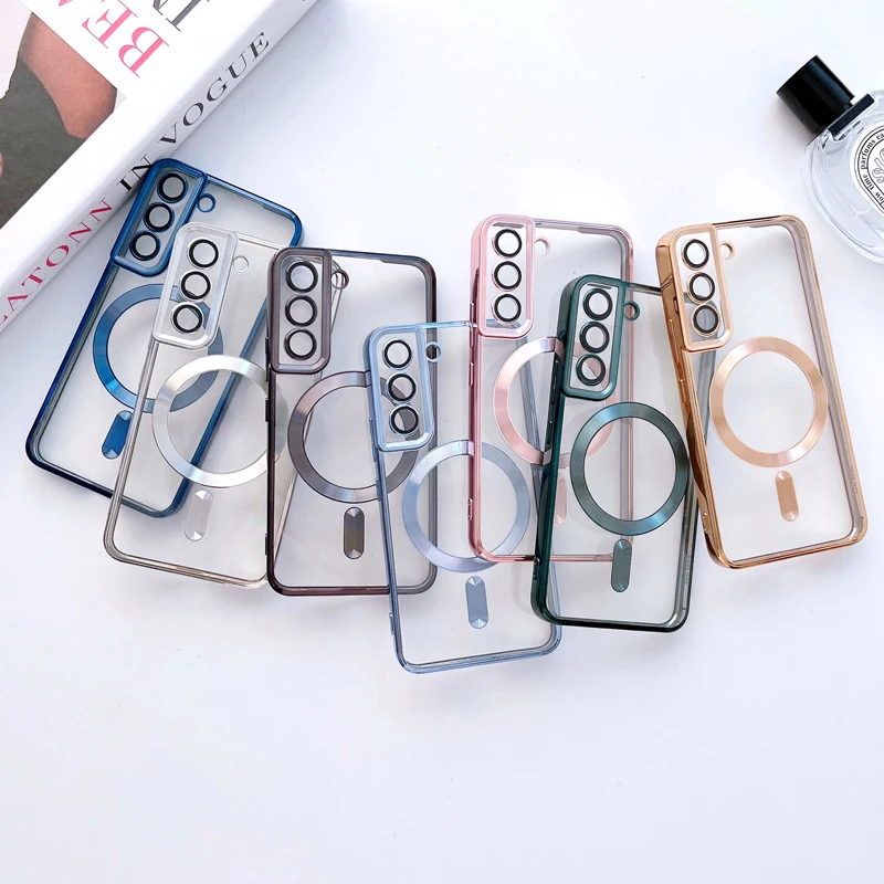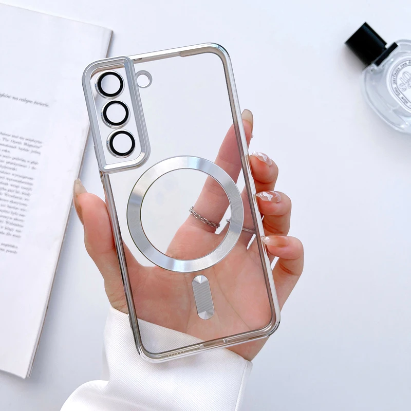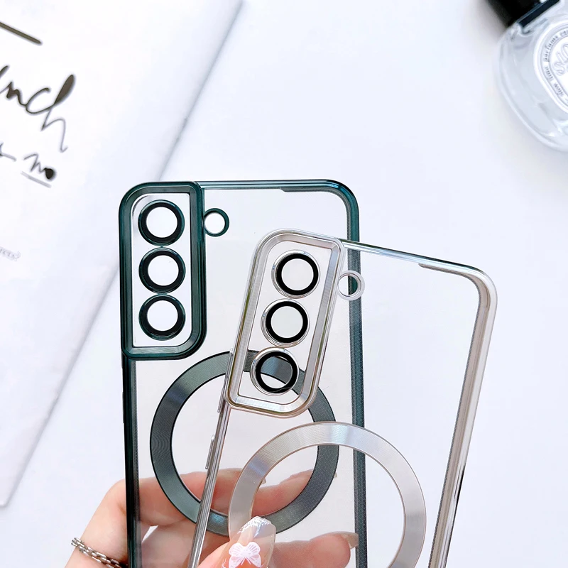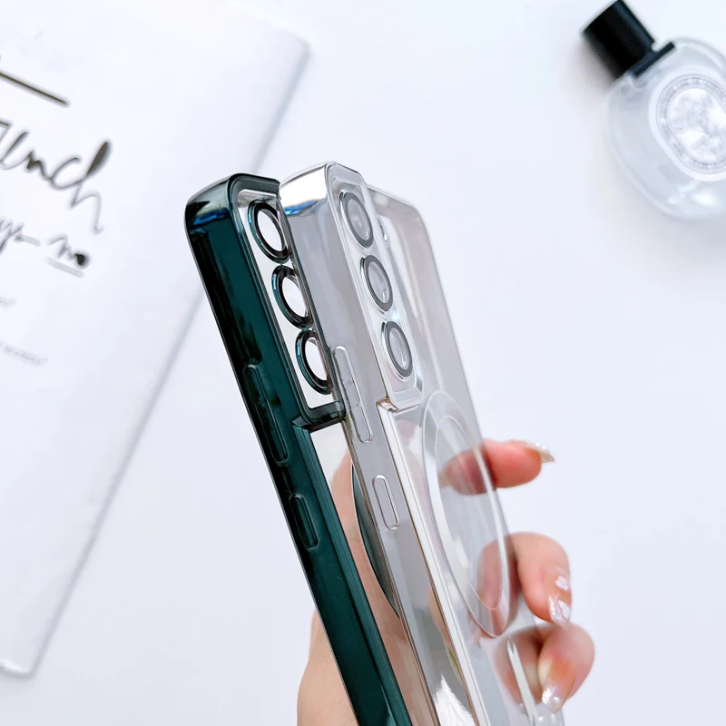 For Magsafe Wireless Charge Case For Samsung Galaxy S22 S21 Ultra Plus S 21 22 5G 4G Soft Transparent Clear Silicone Full Covers