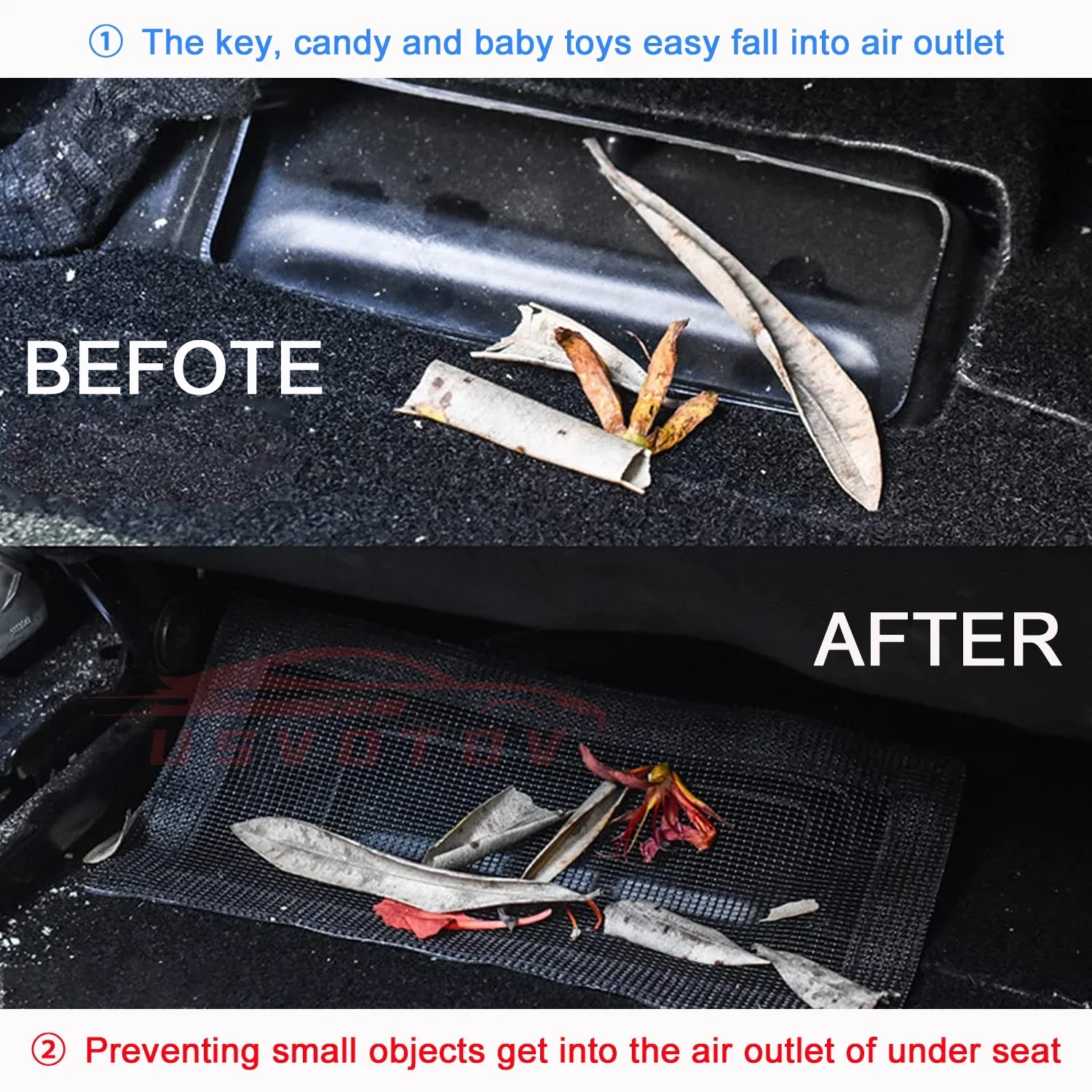 Must Have Accessories if You Have Baby – Because the car original design is air outlets exposed directly, it caused small objects easy to get into the car air vents (Such as baby toys, foods and candy etc small items);