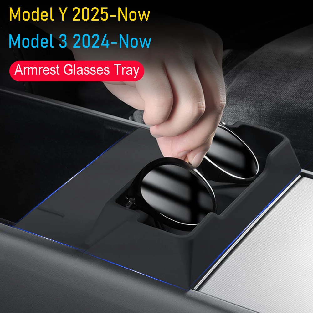 for Tesla Model 3 Y Juniper 2025 2026 Center Console Armrest Storage Box Glasses Holder Tray Case Organizer Interior Accessories