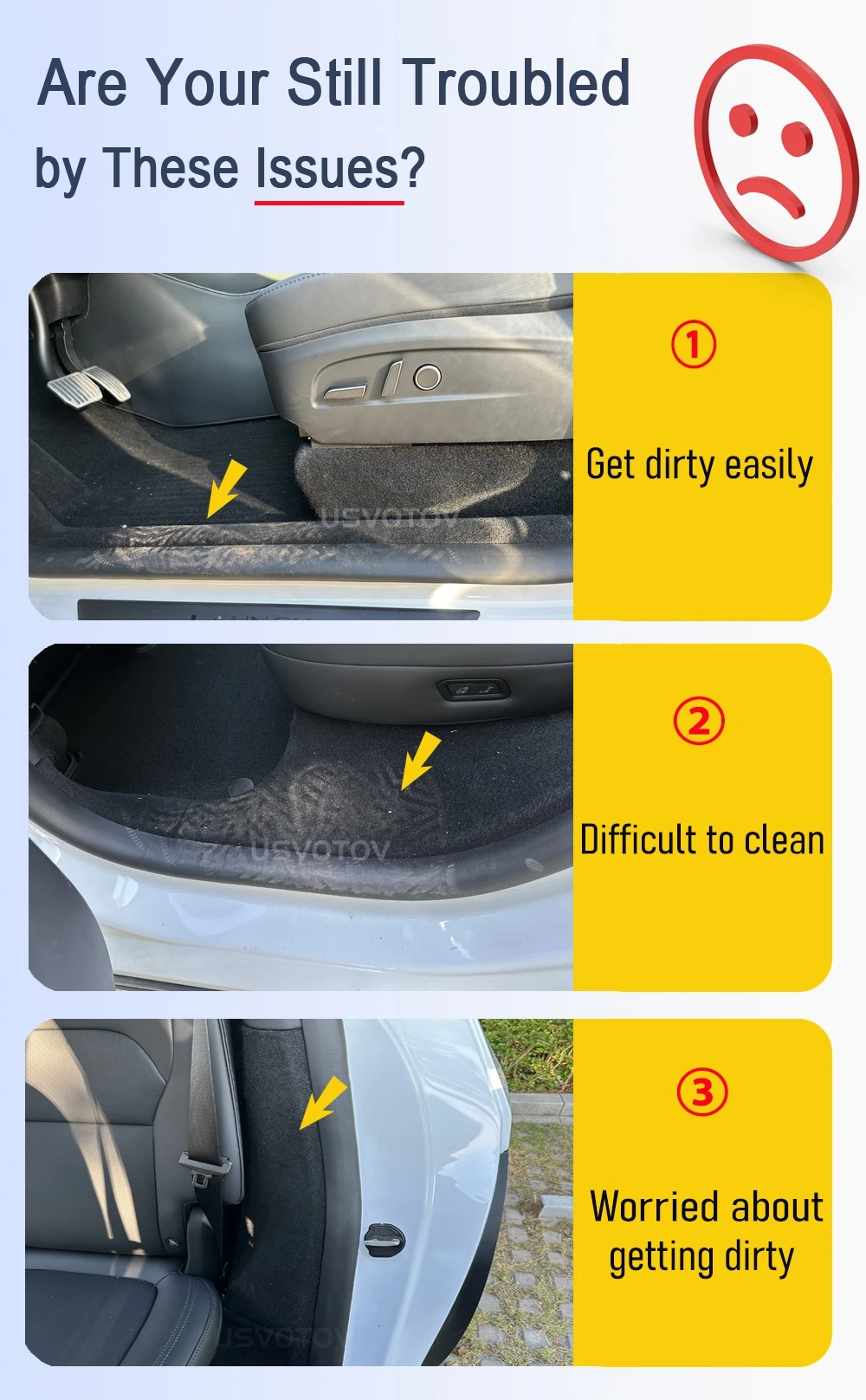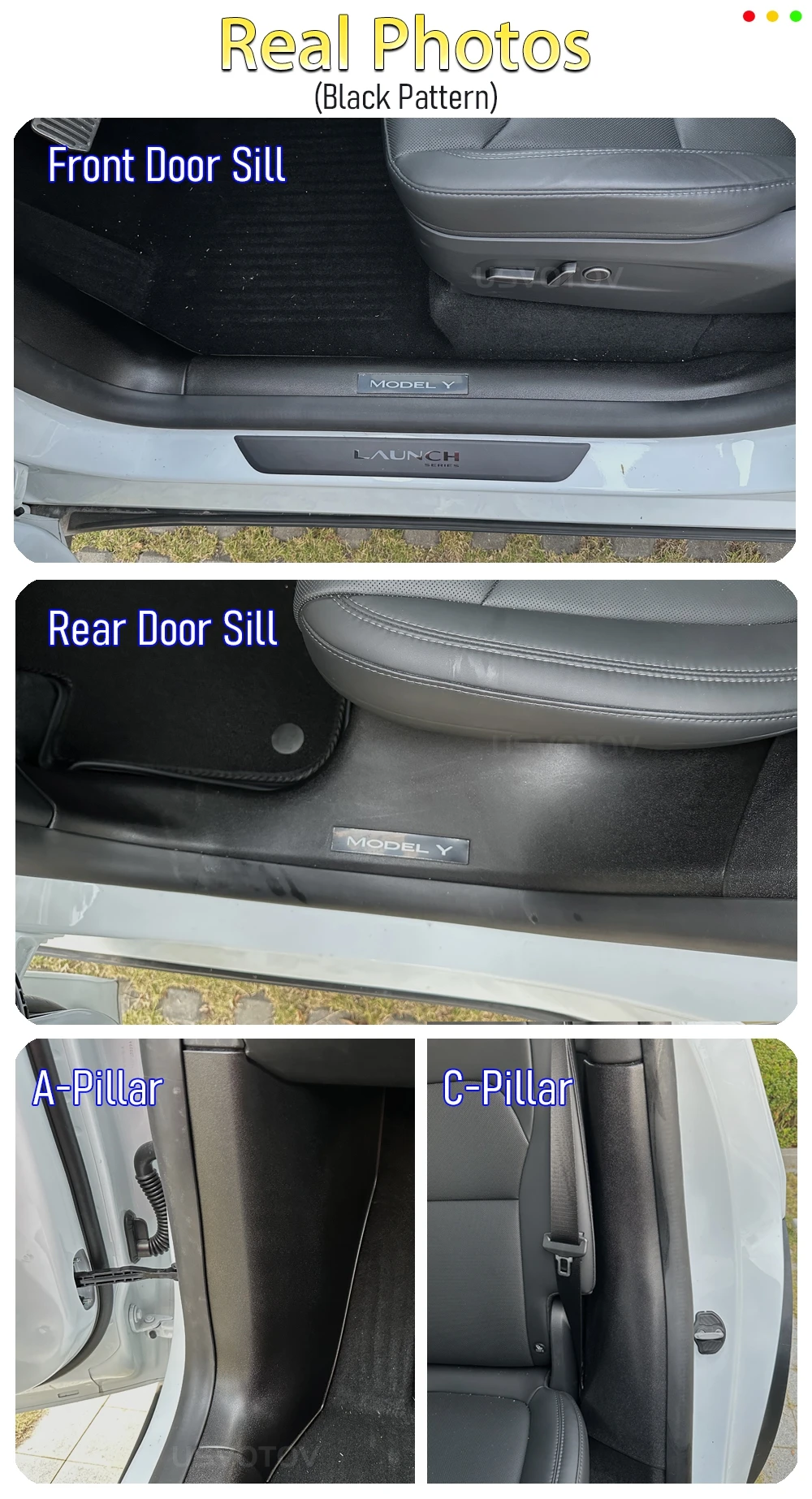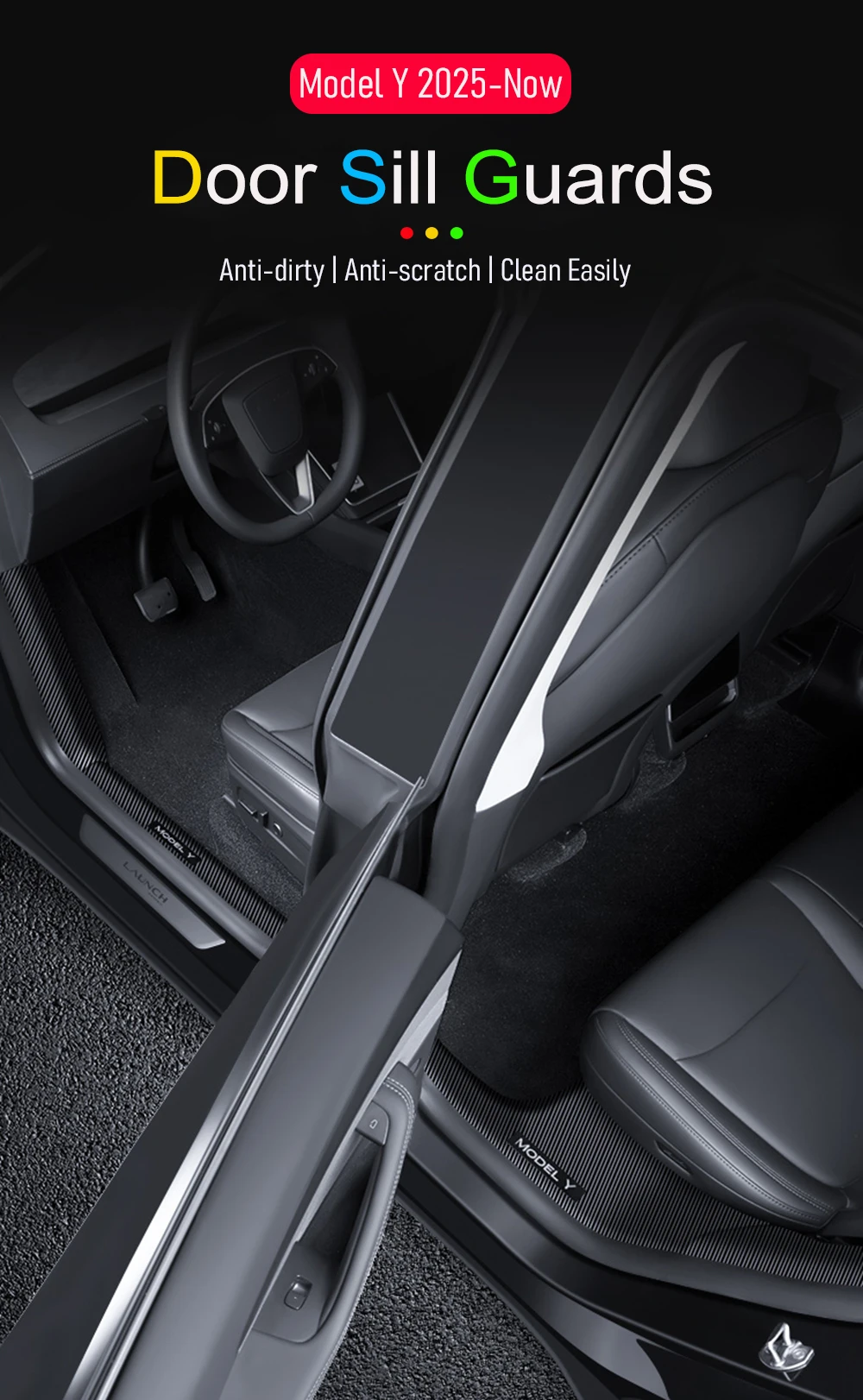The door sill guards can protect your Model Y rear door sill from scratch when passengers get in and out of the car. The factory ones’ is felt material, it is difficult to be cleaned. This usvotov model y rear door sill protector will make it easy to be cleaned.